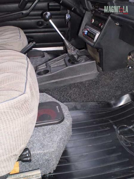 Изначально планировался газ в машине, поэтому саб в привычном ящике не вписывался никак. На первое время были куплены бляны "пионер" 8" (Pioneer TS-E2002i), сделана полка. Сейчас их место заняли фришки иволга 8-ф.