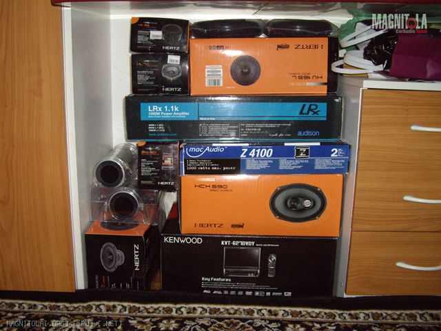 голову Kenwood KVT 627, фронт Hertz HT25 + Hertz HL70 + 2*Hertz HV165L + кроссоверы Hertz, тыл Hertz HCX690 и усилитель Audison LRx1.1k.