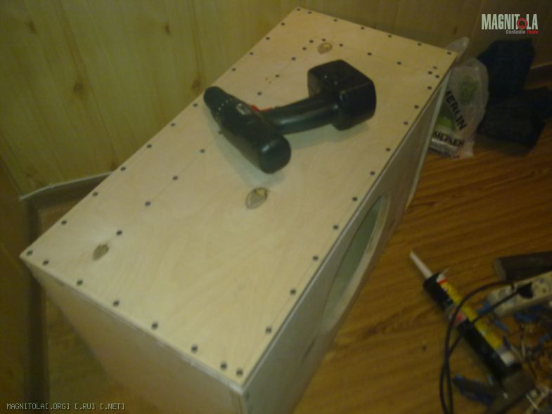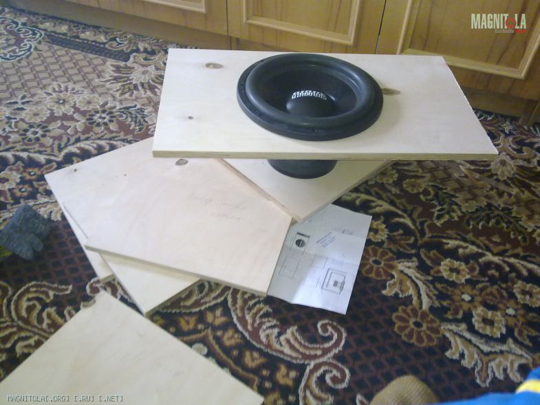 Сегодня быстренько у друга в гараже попилили лобзиком (где то вобще идеально, где то пилка гульнула, но получилось вроде нормhttp://www.bassclub.ru/forum/images/smilies1/smile.gif. Жена сказала чтоб не уезжал из дома, поэтому весь процесс сборки производил прямо в квартире, начал на балконе но там холодно :(, перебрался в коридор-тесно, а в гостинной самое тоhttp://www.bassclub.ru/forum/images/...s1/biggrin.gifтепло, уютно и телик рядом. Результат: