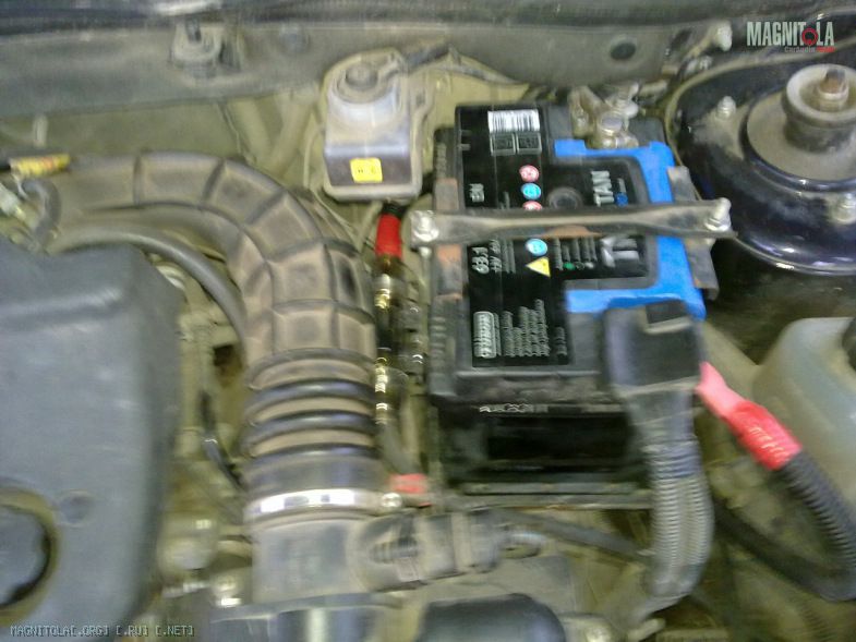 Долго думал куда засунуть колбу под капотом, потому что места реально очень мало, в итоге прикрутил колбу к планке , держателя акума, получилось очень удобно, что бы не делали под капотом мешать она не будет