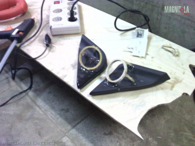 начал делать подиумы под ВЧ, думал обойтись без зажимов, но ппц не удобно и сразу оптянуть не получилось: