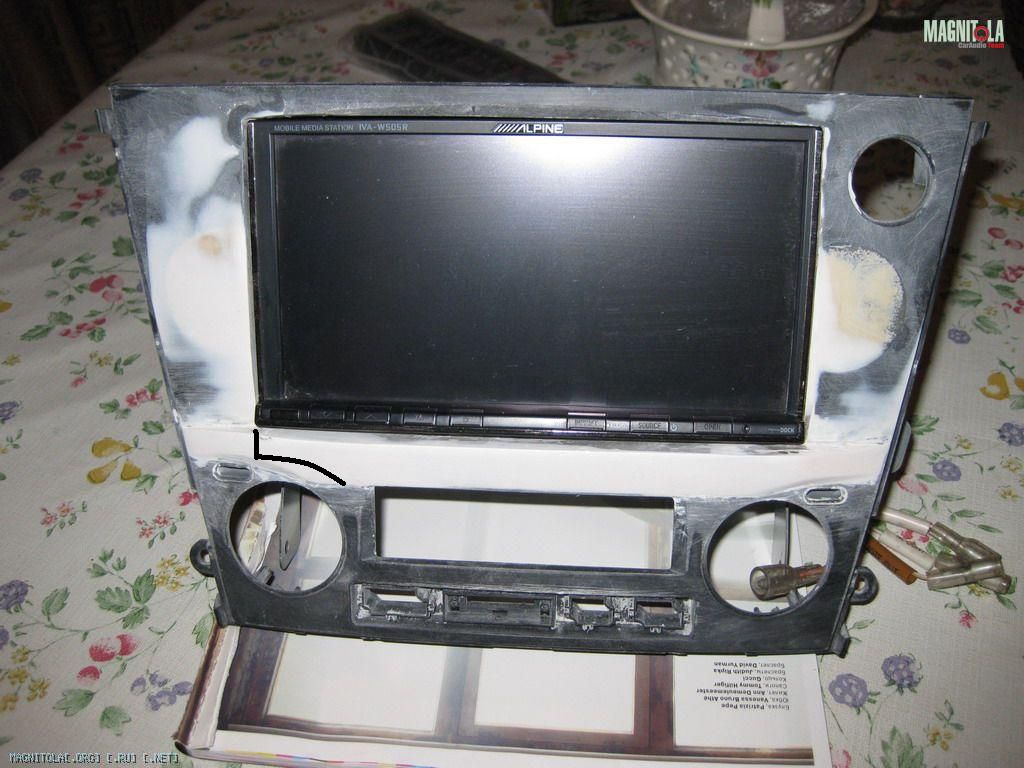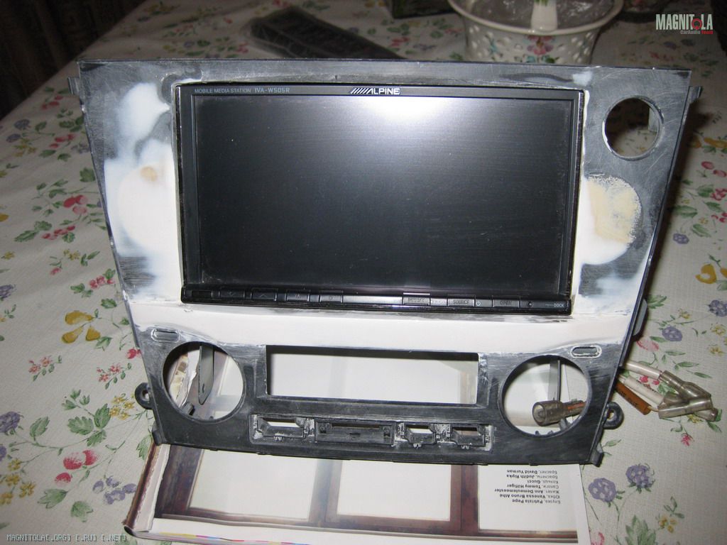 В конце прошлого года купил переднюю панель от штатной магнитолы/климата и она лежала ждала своего часа. На прошлой неделе была приобретена IVA-W505R в хорошем состоянии и началось кромсание штатной панели. Пока показать особо нечего, т.к. еще не могу решить как обыграть нижнюю торчащую планку с кнопками Альпа. Ищу решения в инете.