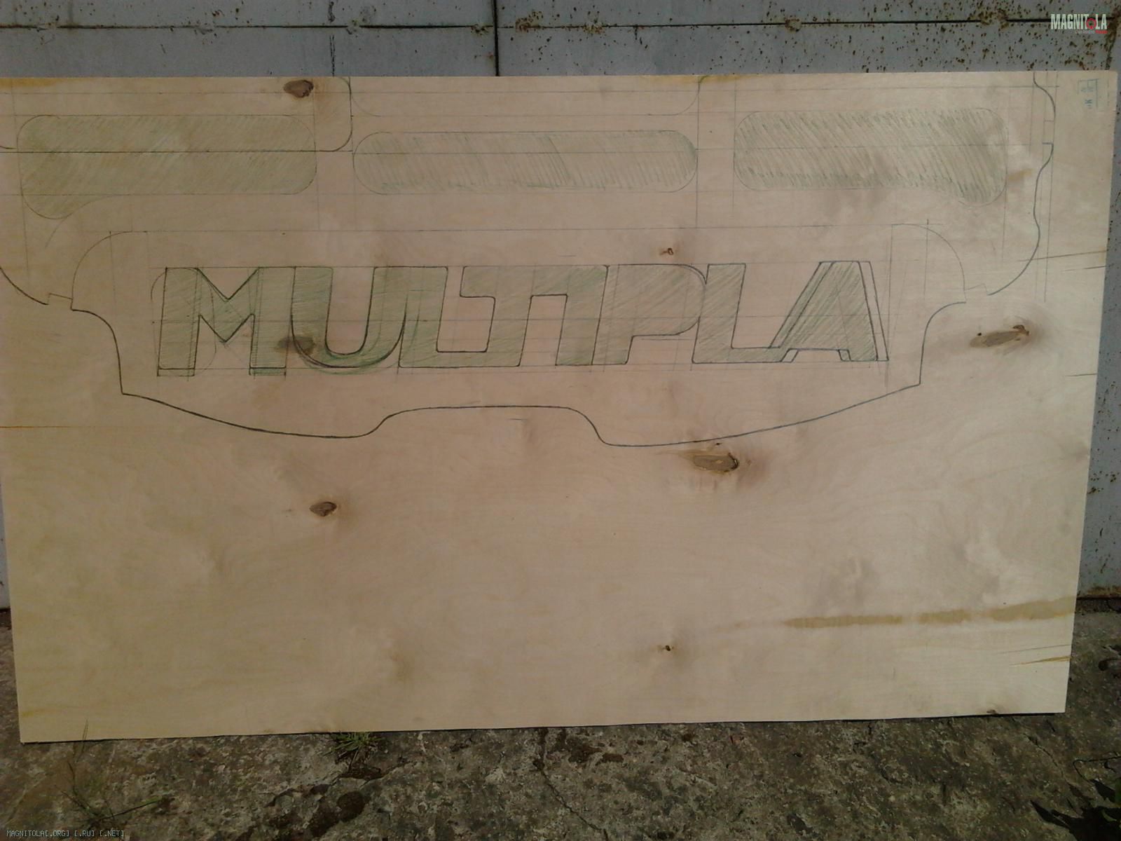 Надпись на подвижной части полки - тоже под вырез, но, наверное, руками пилить буду, не электролобзиком. Все отверстия в полке будут забраны сеткой и обтянуты обивкой (радиоткань). Так что они после себя оставят только рельеф и акустические "дырки"