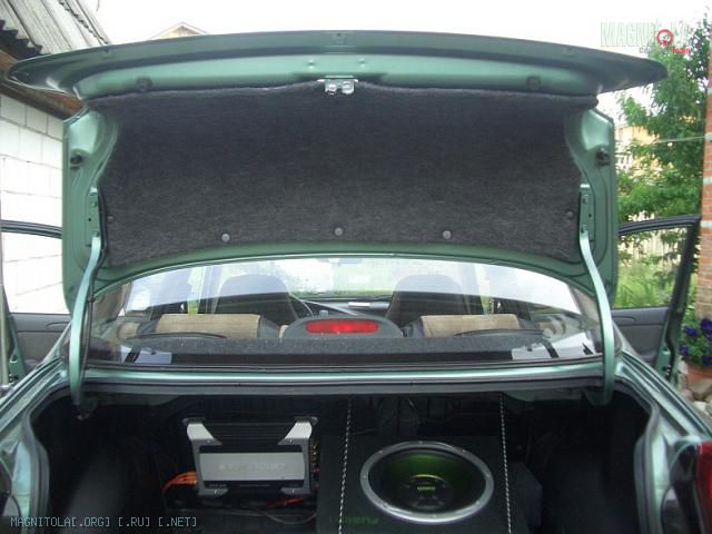 Так получилось, что было у меня без дела тысяч 6-7 ну вот и подумал а не порадовать ли мне себя и машинку. И следующей ступенькой в АЗ стало приобретение саба с усем. Кстати саб даже подошёл по цвету к машине :) Так как я был тогда полным нулём в АЗ (ну в принципе я и сейчас им остался), то по советам продавца "будет рубить ништяк" взял что было в магазине и не загонялся, ну ещё установочный комплект мистери на четырёхканальник, в семь тыЩь уложился. Помогли с установкой всего этого дела на работе (ведь я ни бум бум) А теперь о смешном. Подключение было такое. На 2 каналах висели задние бляны, а на 2 других саб мостом. Кстати очень удивился звуку от блинов, когда они заорали от уся я мягко говоря о####ел, что ни такое могут. Для бюджетной системы вместо саба (удалив пищи) думаю клёвое решение. Так как блины стали сильно орать, то было решено сделать для них полку, ибо на фольге они чувствовали себя не очень. Выложу только фото установленной готовой полки на машине. Вложение 66328Вложение 66329 Сделана она была из 3-х слоёв 10 мм фанеры, долго мучался с подгонкой, но в итоге получилась как будто она родная.