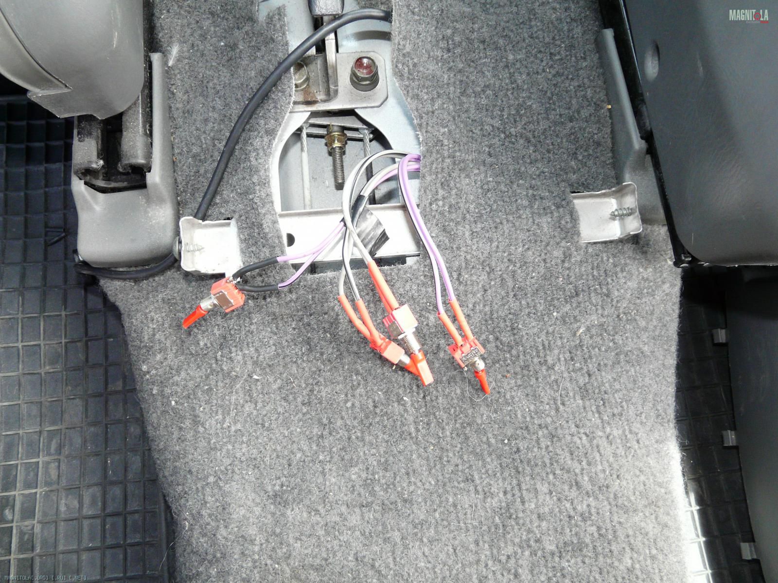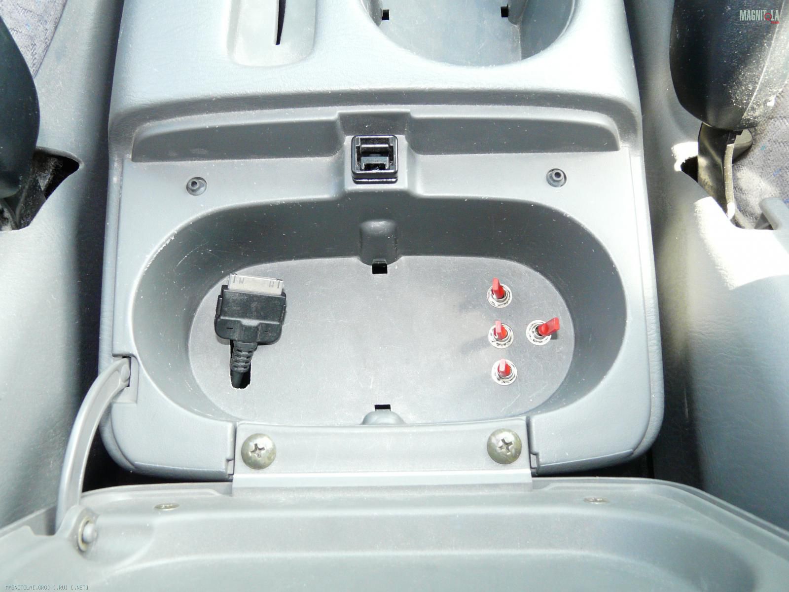 Для управления включением усилителей вывел в подлокотник тумблеры. Сюда же вывел кабель для iPod (Full Speed).