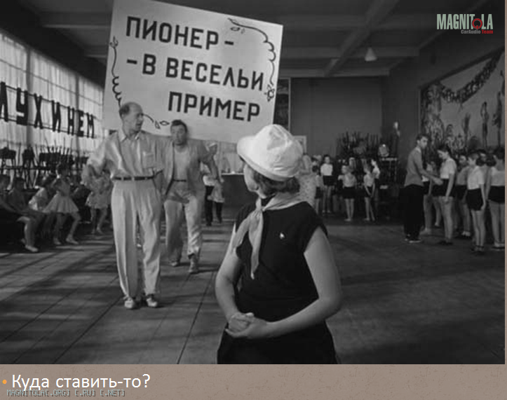 "Куда ставить-то?!" (к/ф Добро пожаловать или посторонним вход воспрещен).
