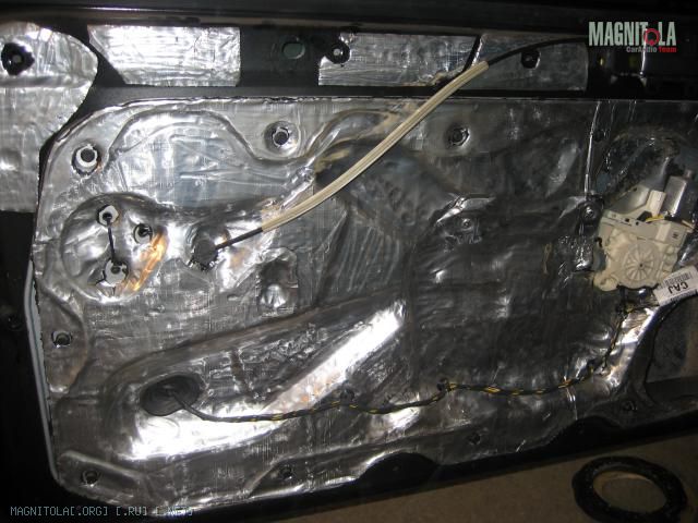 сегодня разобрал двери и о####ел, что бы добраться до внутренностей -надо снять алюминиевую панель к которой приклепан стеклоподъемник, короче шумить походу придется через отверстие под динамик.=(