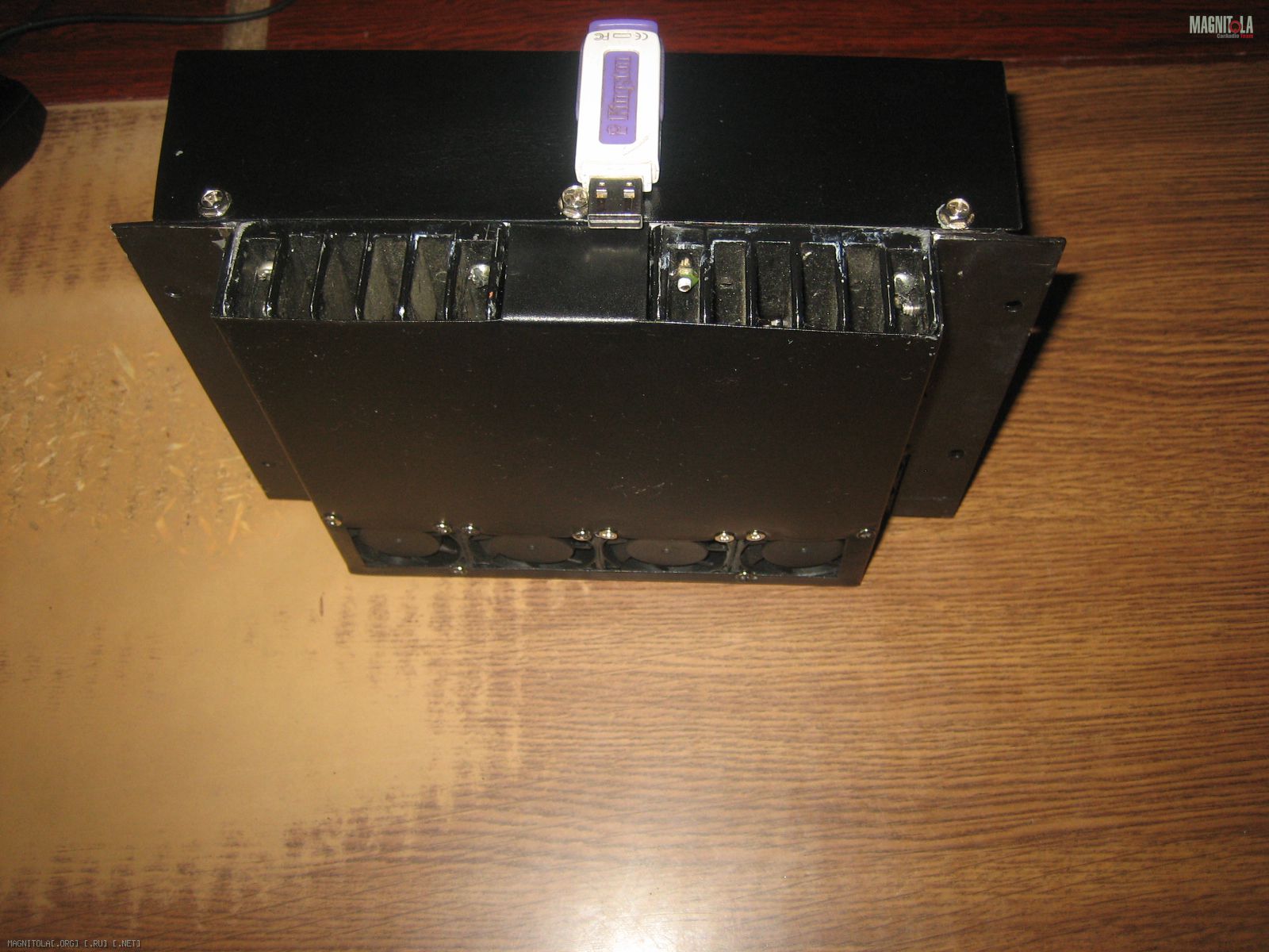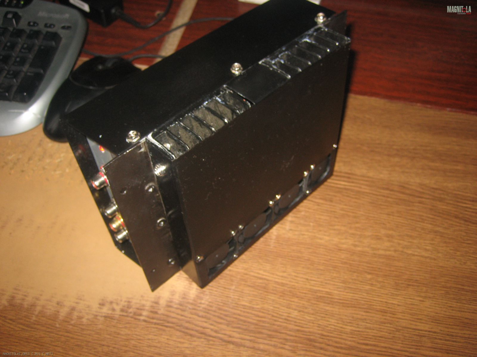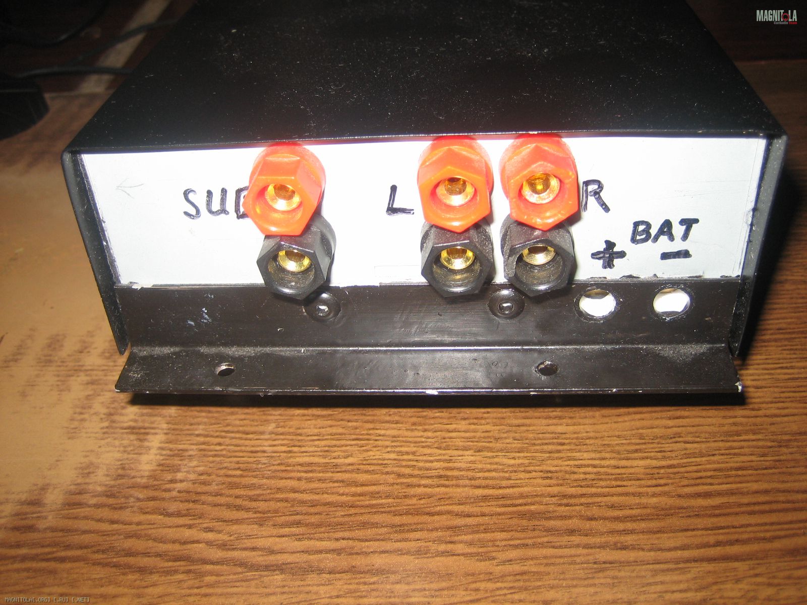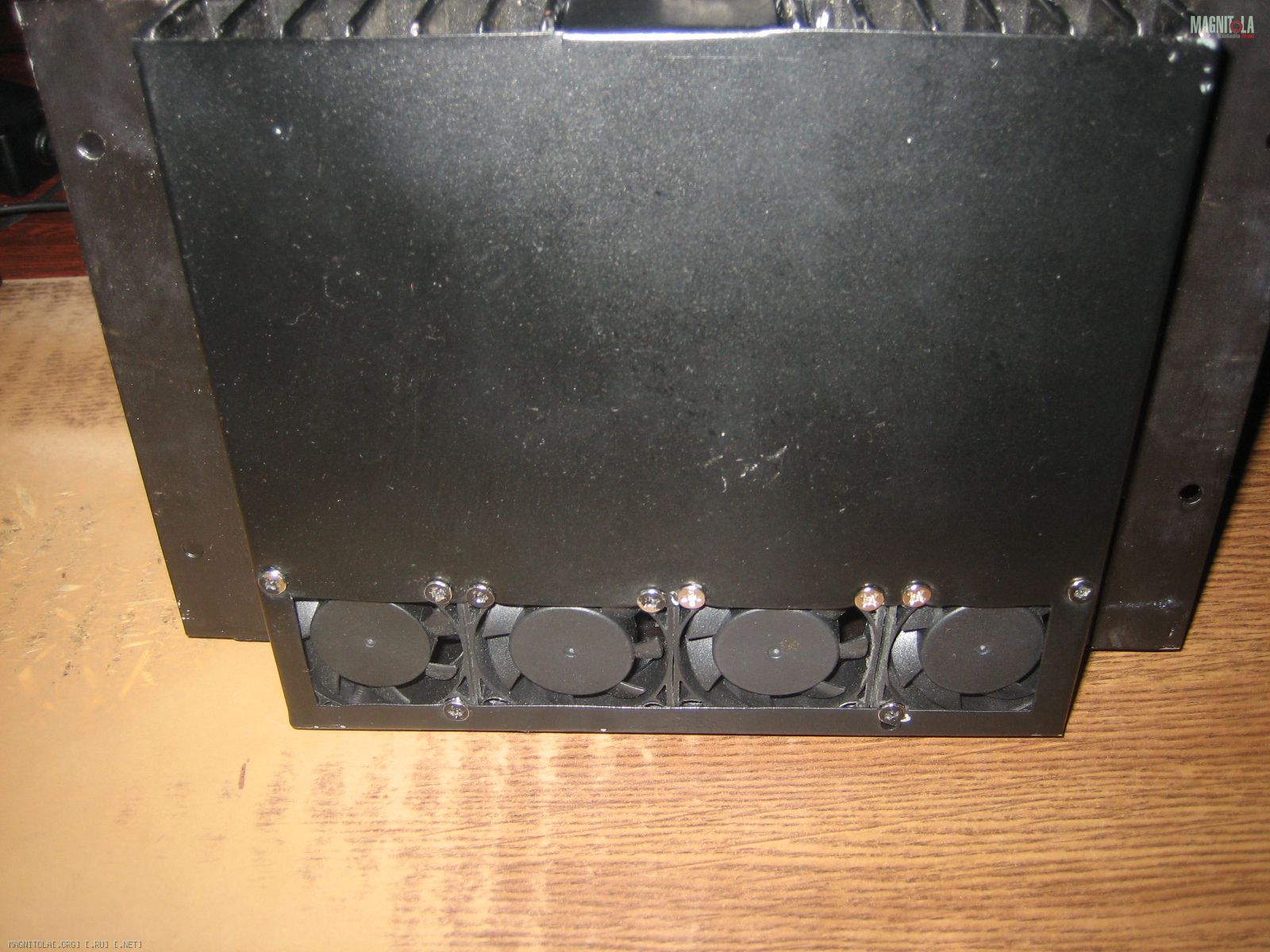 Так что пока фото усилителя. Надо прикупить "бананы" для соединения акустических проводов и подключить на пробу. Монтаж и прокладка всех проводов капитально навернео по весне, когда потеплеет. Щас прохладно, -15, на выходные ниже 30 будет, так что лучше всё по теплу делать. Конечно надписи немного колхозные ,это сугубо для подключения. Усилитель будет "спрятан" , так что внешний вид не волнует. По этой же причине и вентиляторы.