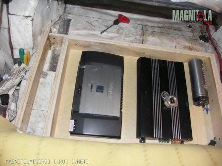 После примерки ящика сабов пришла очередь изготовления короба под усилители материал был выбран так же 8мм фанера т.к по весу более подходила нежели другие материалыВложение 81045