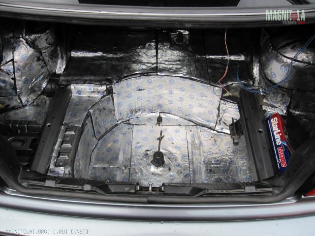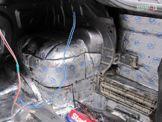 Сейчас полы уже оклеены Спленом 4-кой, проложены межблоки (DAXX R50) и акустические провода (DAXX S62), силовой кабель (Supra) и сверху уложены штатные полы. К сожалению фоток пока нет.