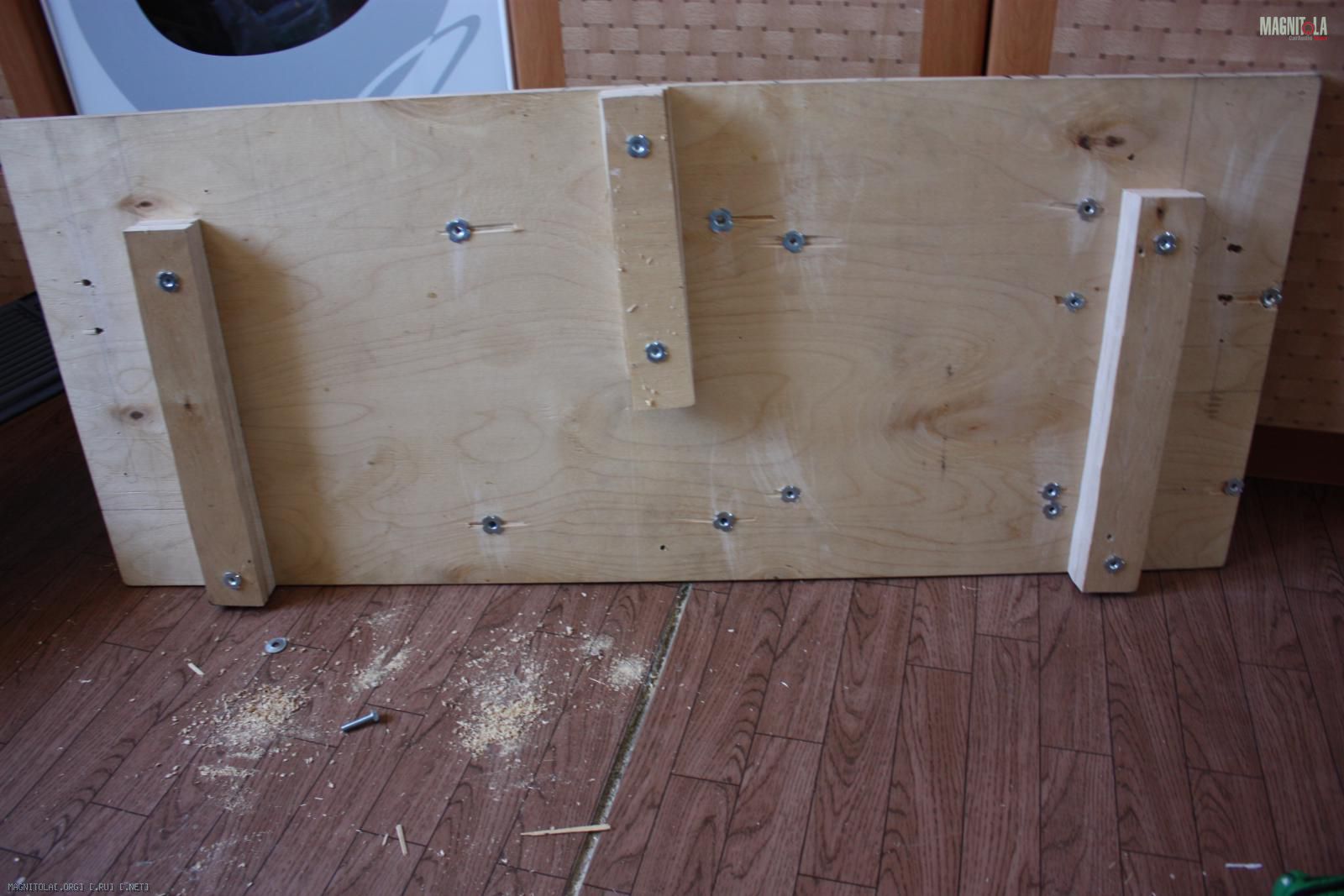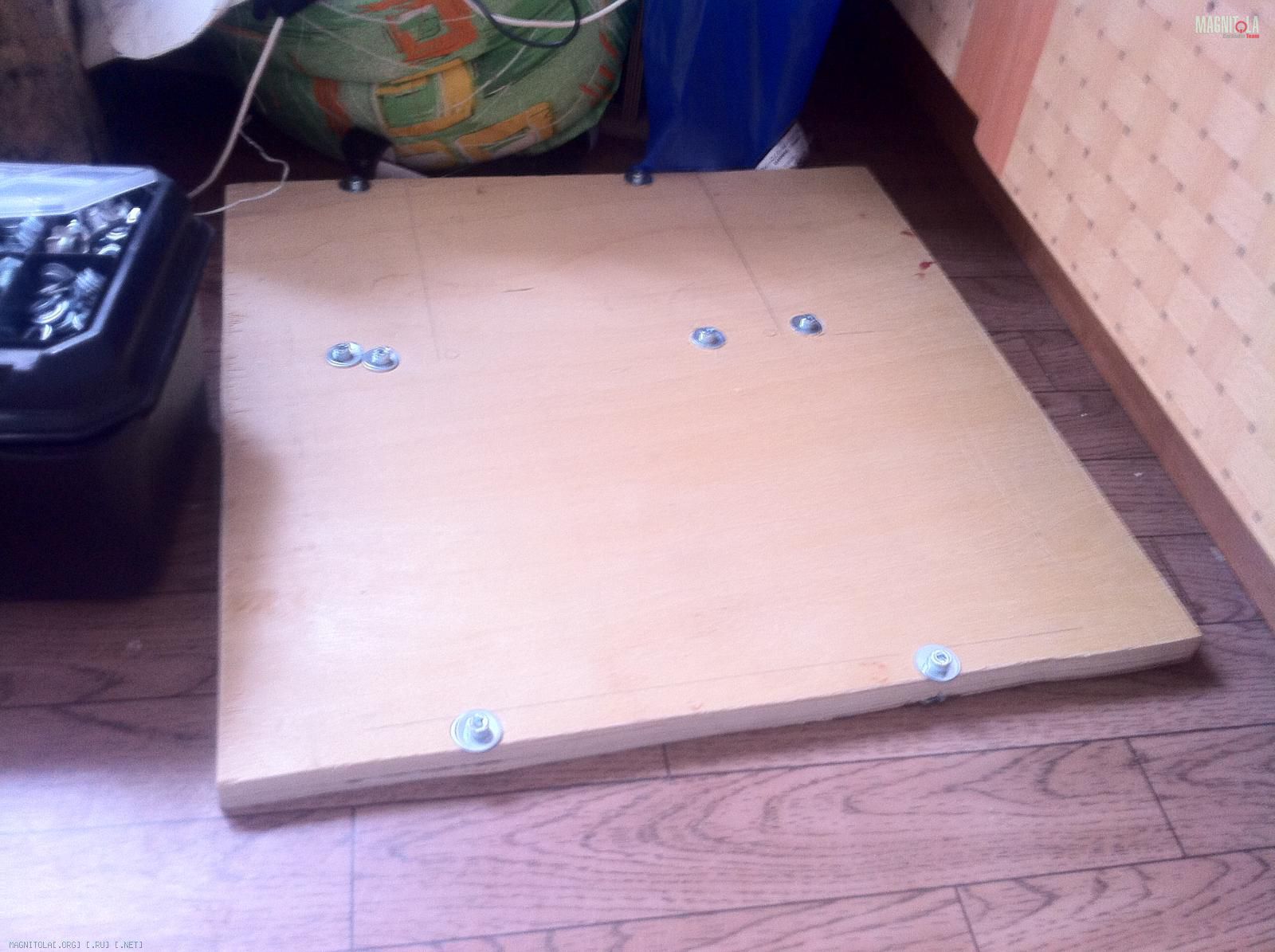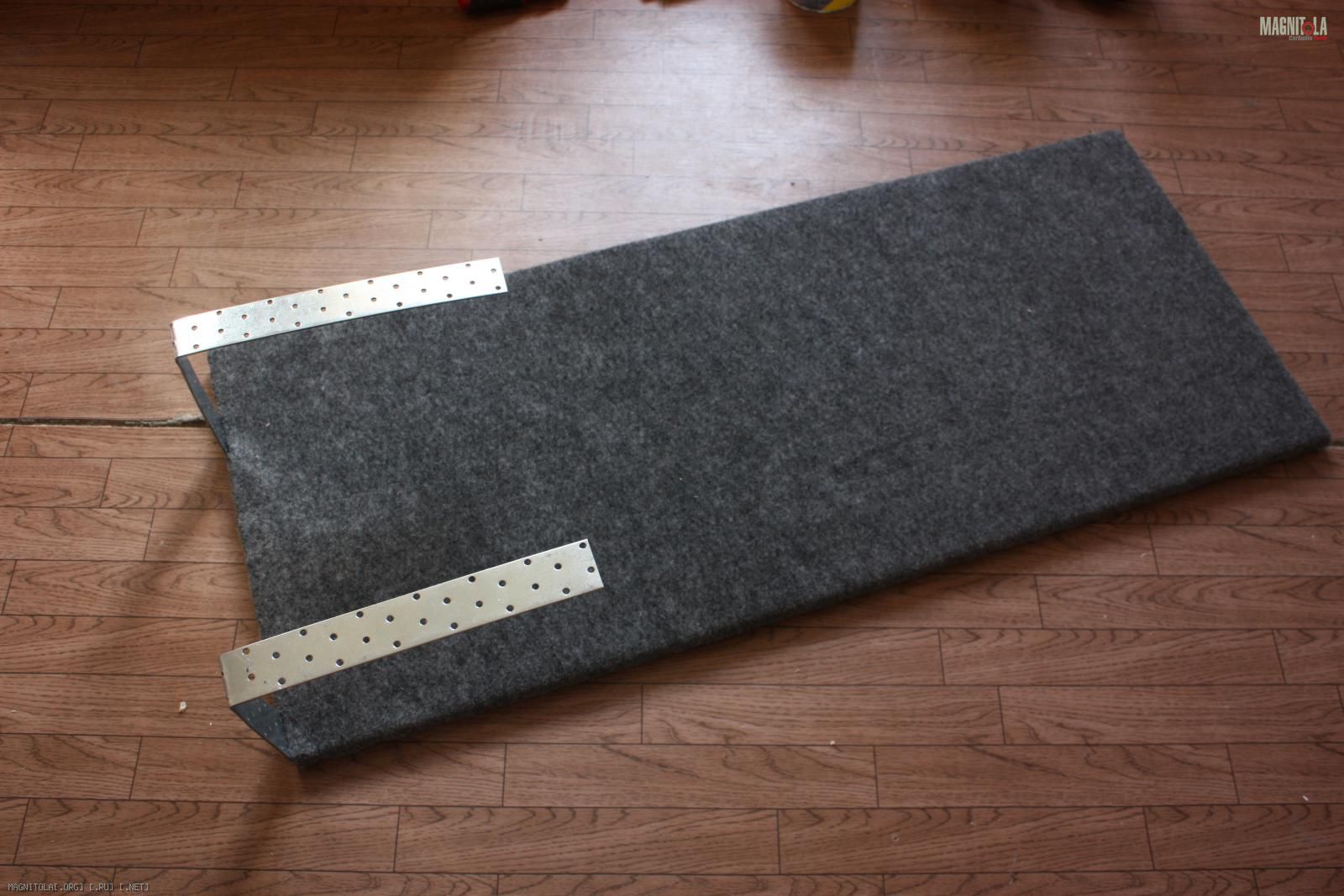 для того что бы пластина не выходила за габариты фальш пола делаем вот такие не врачные на первый вгляд скосы. дальше сверлим отверстия и опять врезные гайки.