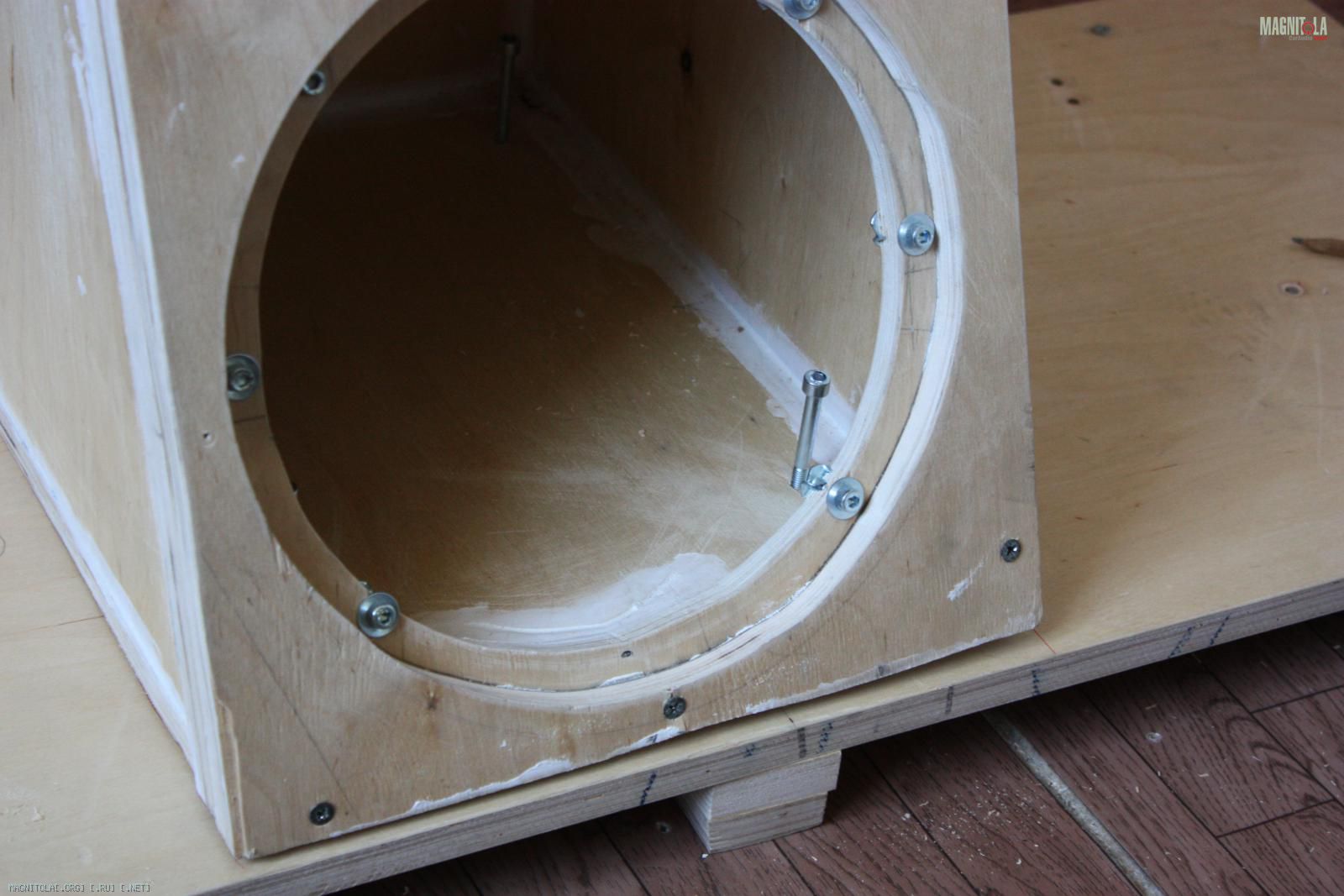В корпусе сабика насверлено дырок для крепления дина. тут решил использовать болты под шестигранник и врезные гайки