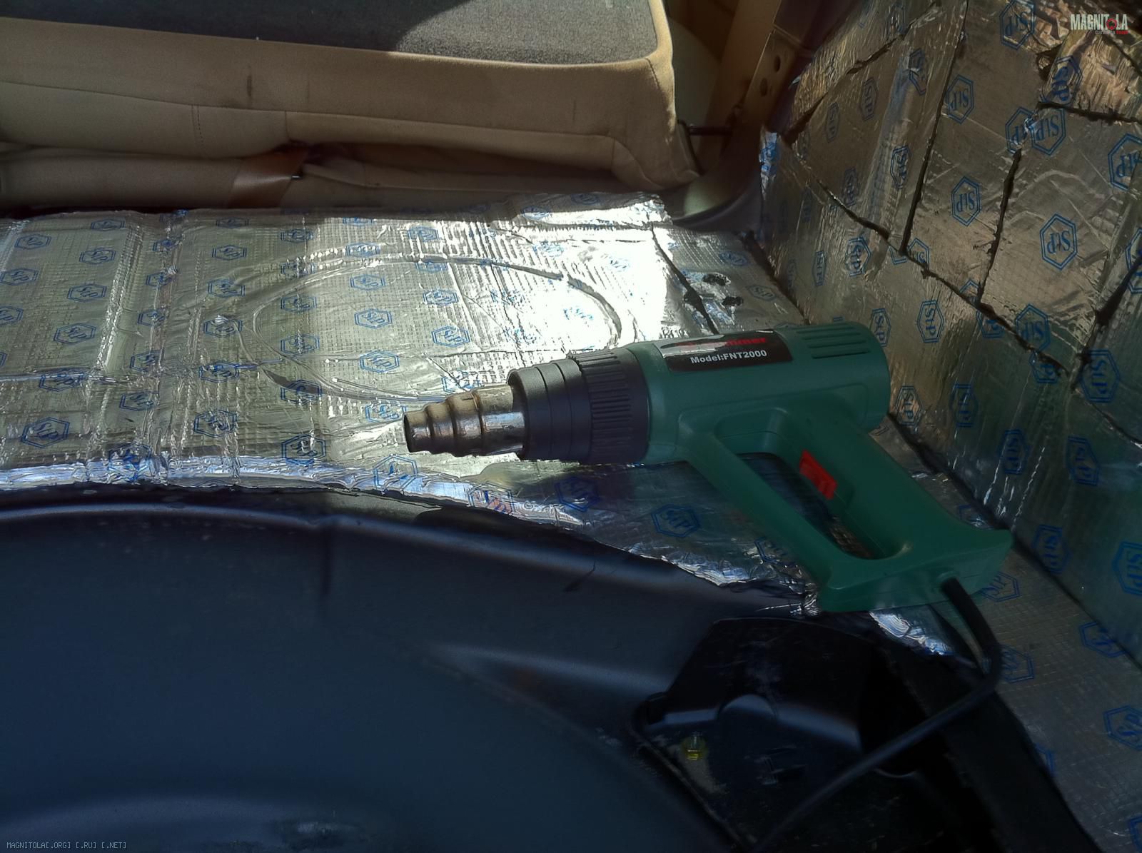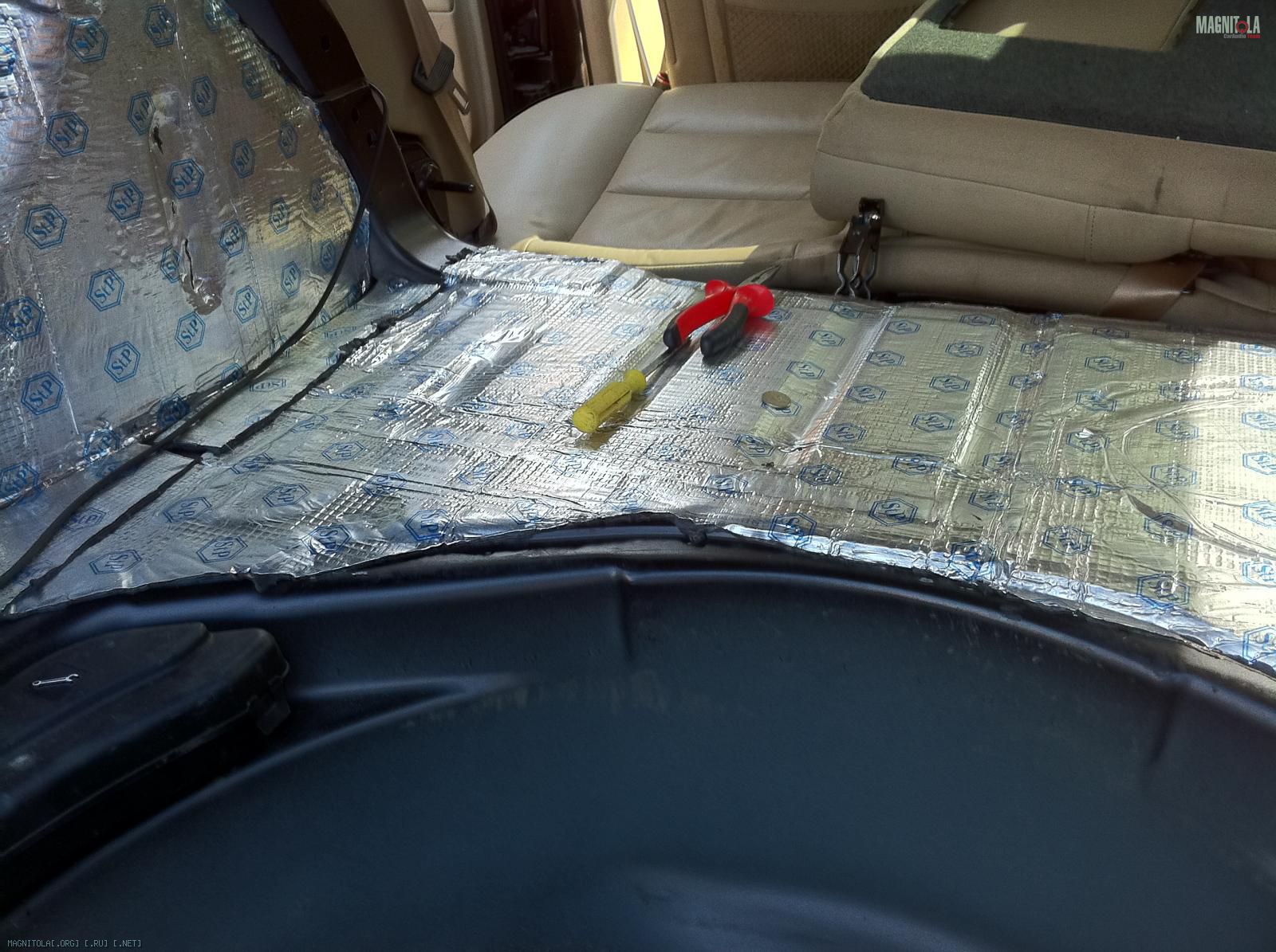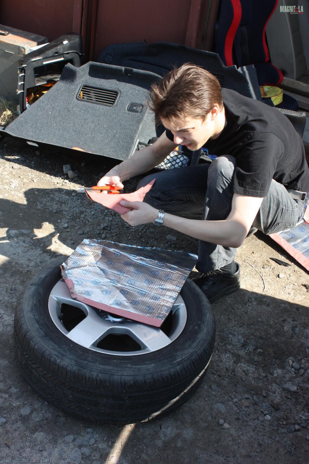 дальше переключаемся на автомобиль. вчера денек был солнечный, хороший и было желание что-нть поковырять. в запасах нашел несколько листов вибры - решил закатать задние арки. вот так вот выглядит габажник без обшивок: