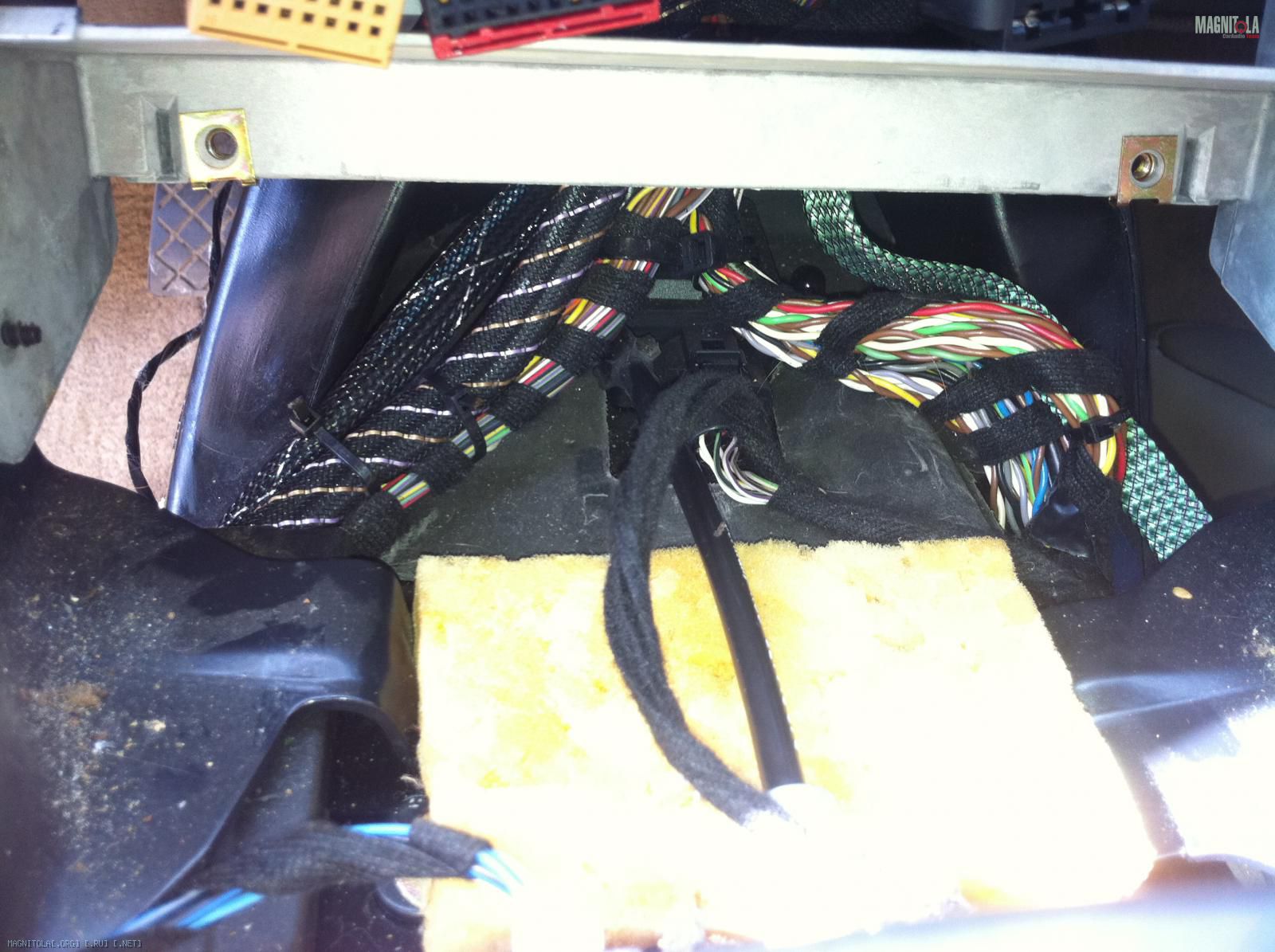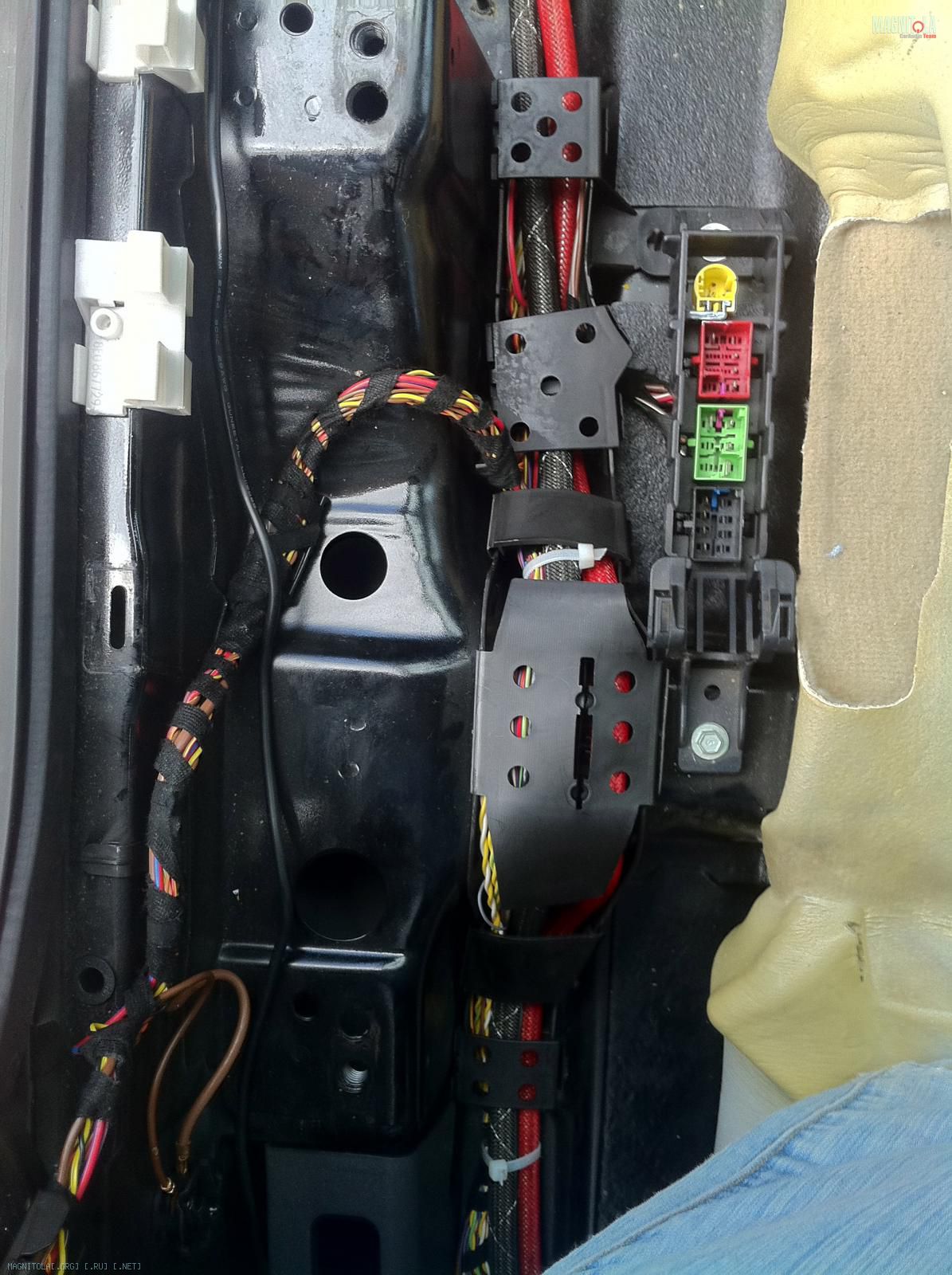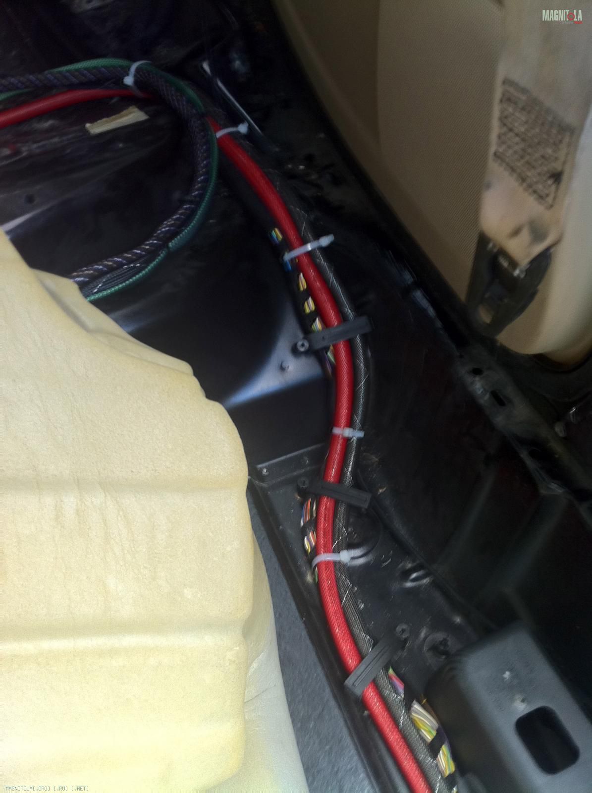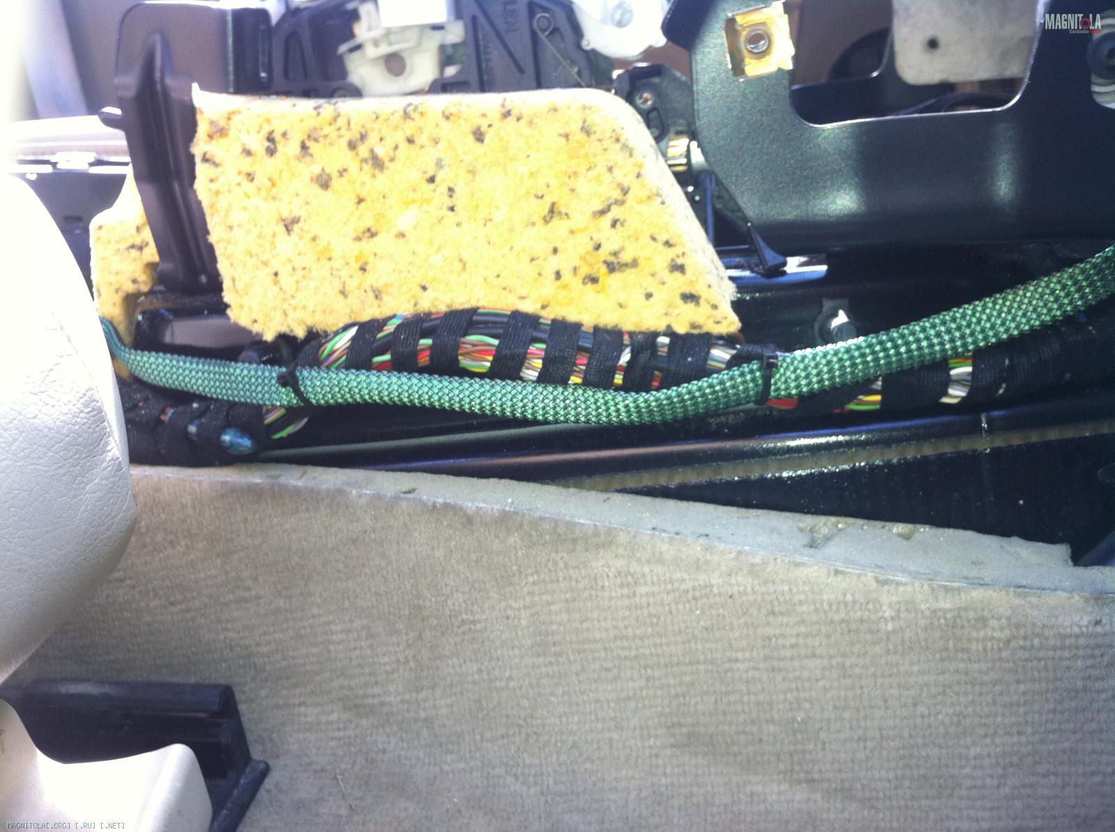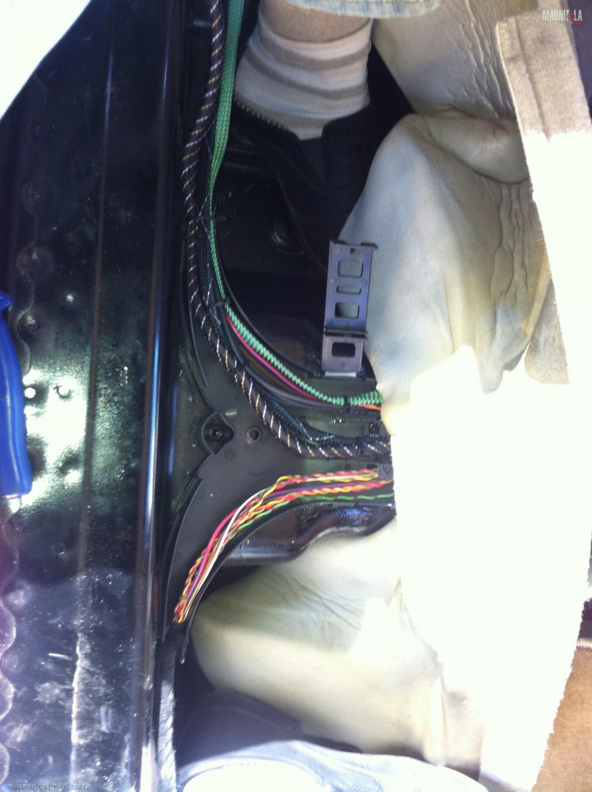 тут провода входят в следующий кабель канал над тонелем к заднему сиденью
