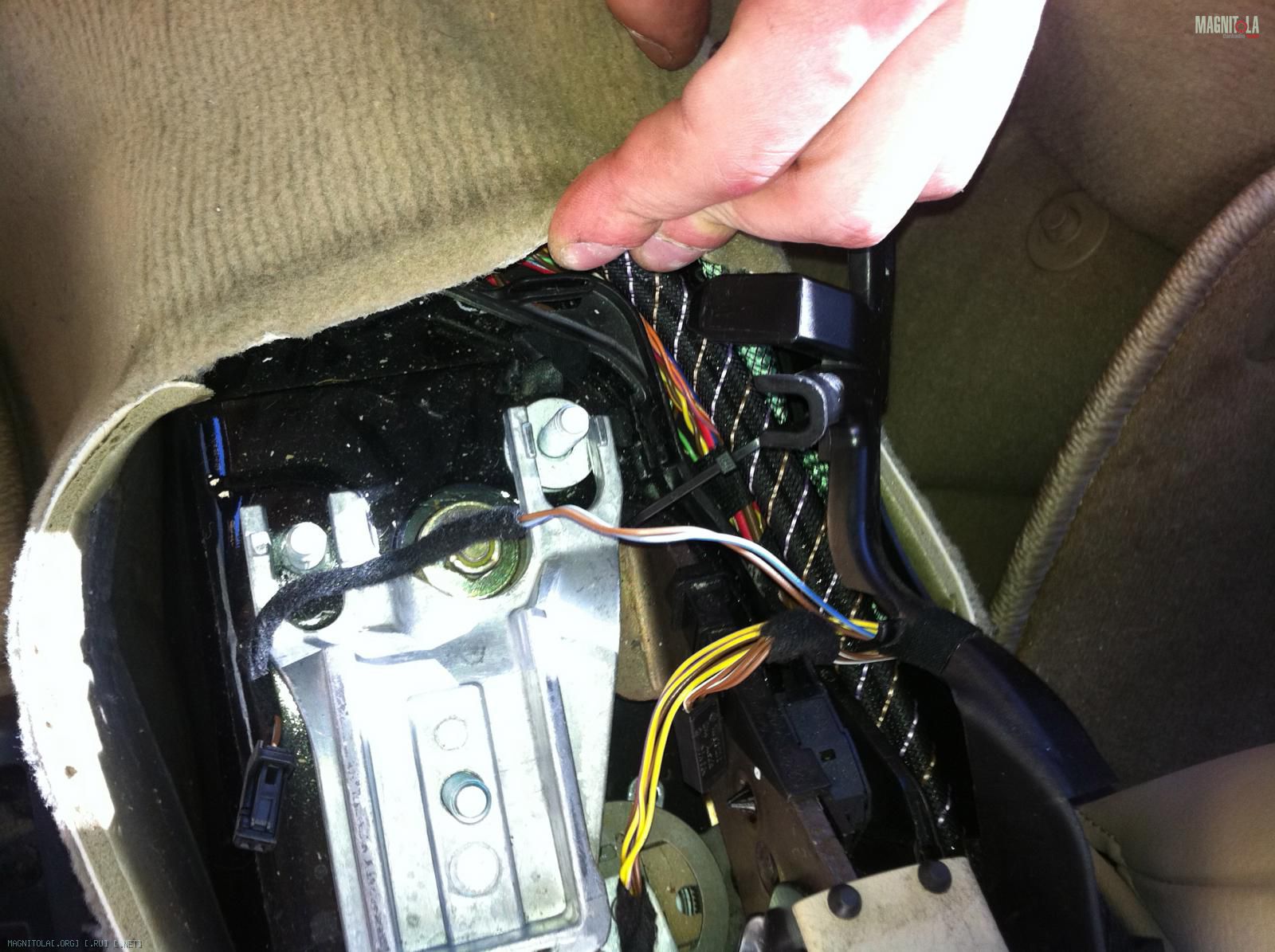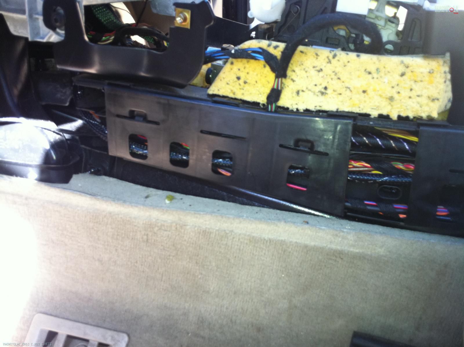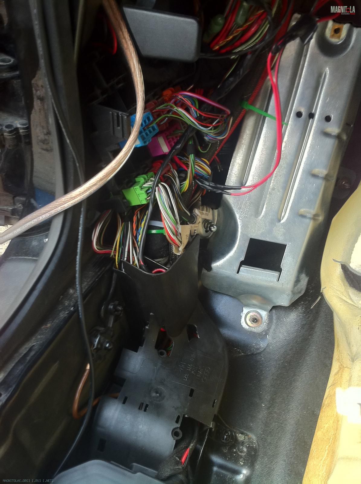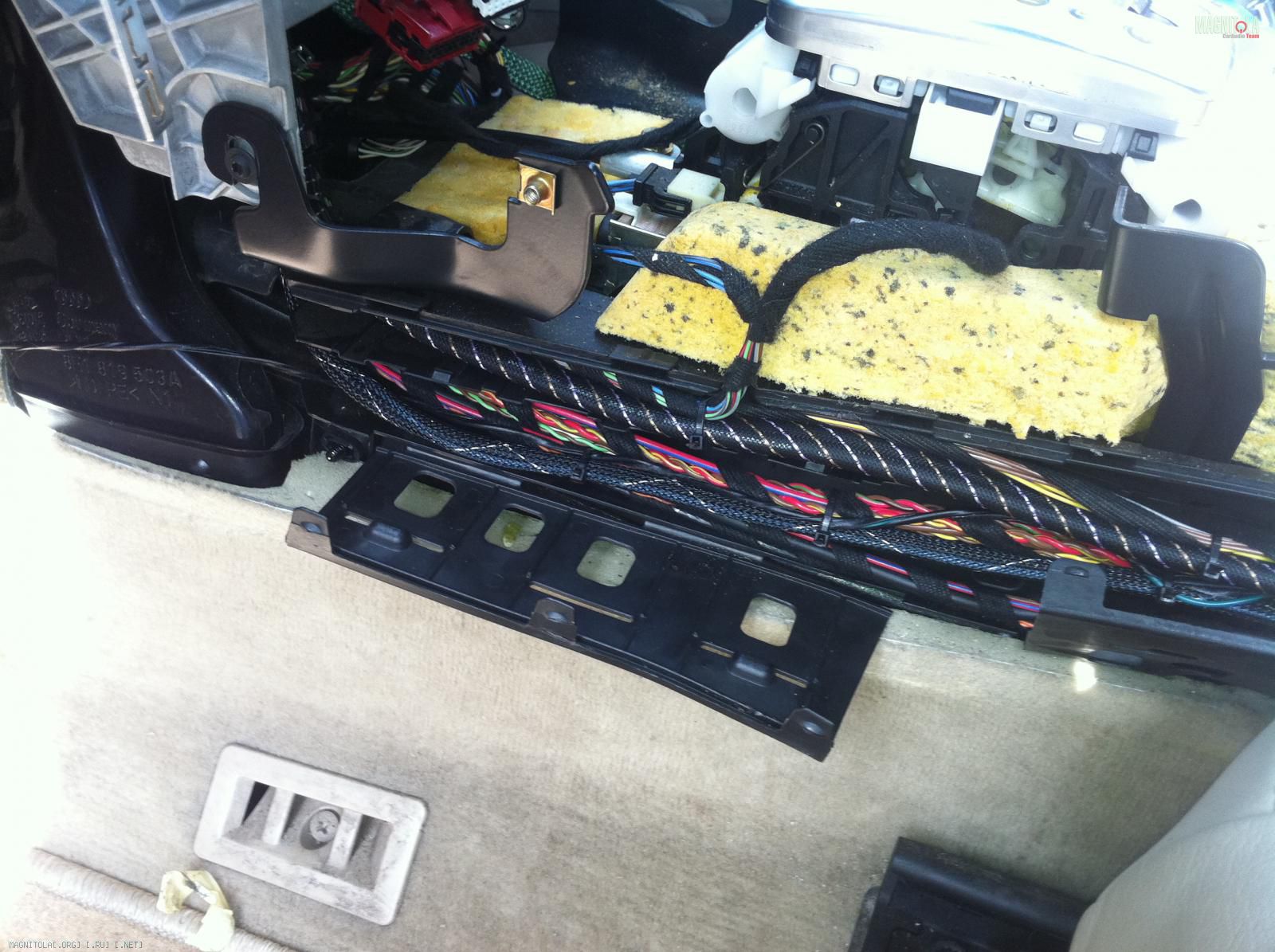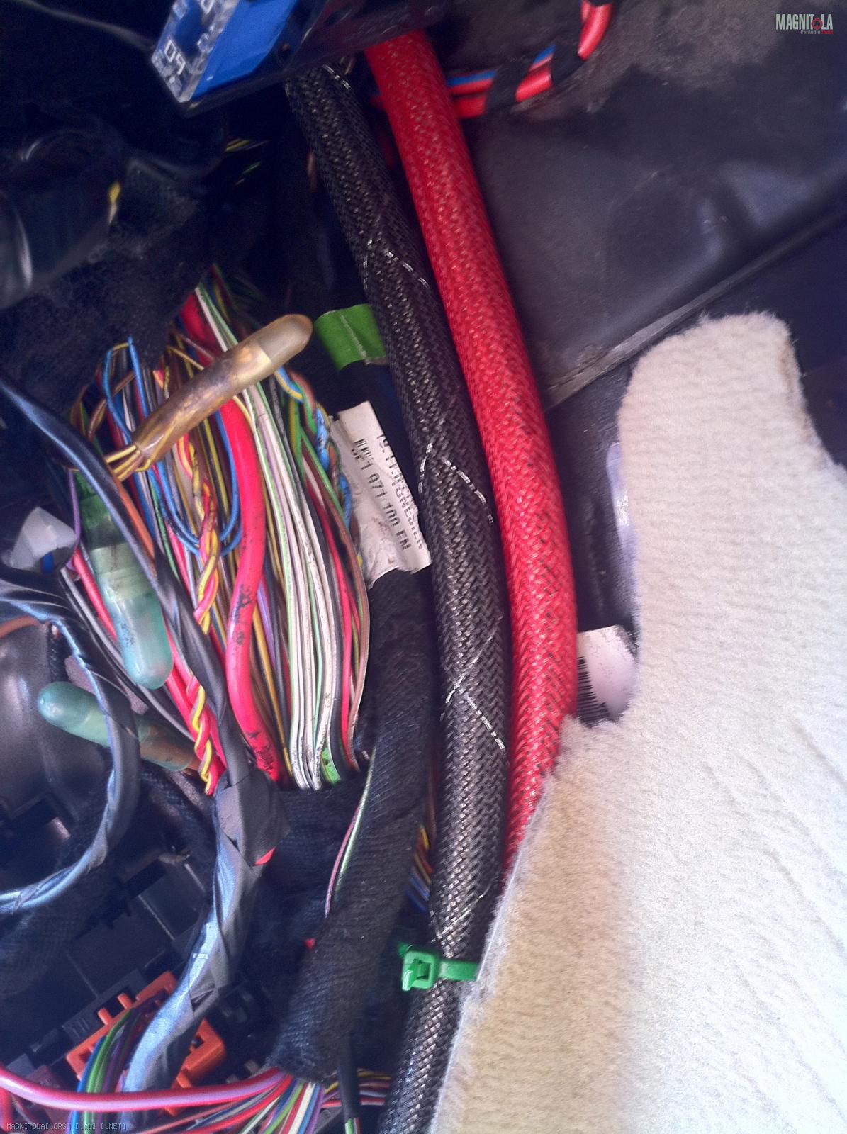 тут провода входят в следующий кабель канал над тонелем к заднему сиденью