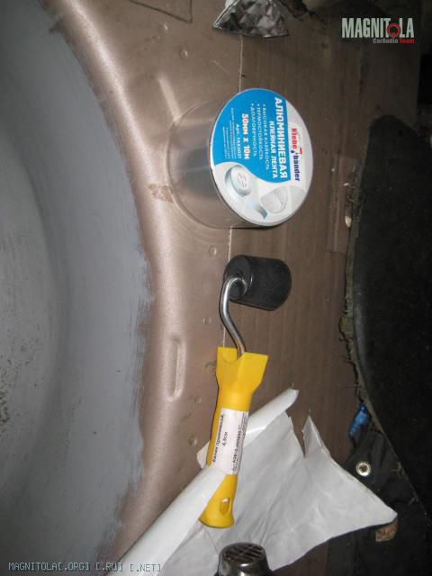Вкатав с непривычки 2 листа вибры, немного решил облегчить свой труд и облогородить его) и было на следующий день куплено прикаточный валик и моток, для пробы, алюминиевого скотча)
