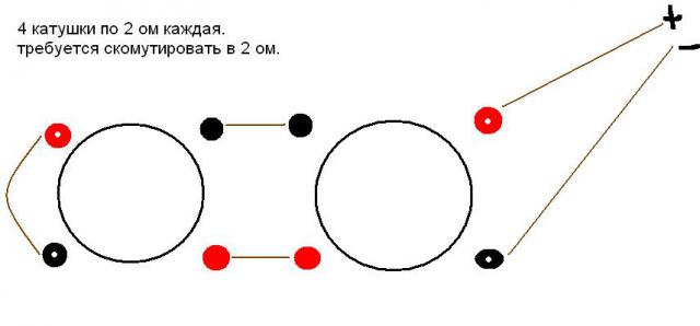 Рисунок конечно достойный ! Но мне кажеться там попытка нарисовать последовательное соединение. Значит оба плюса на один плюс уся. И минусы также.