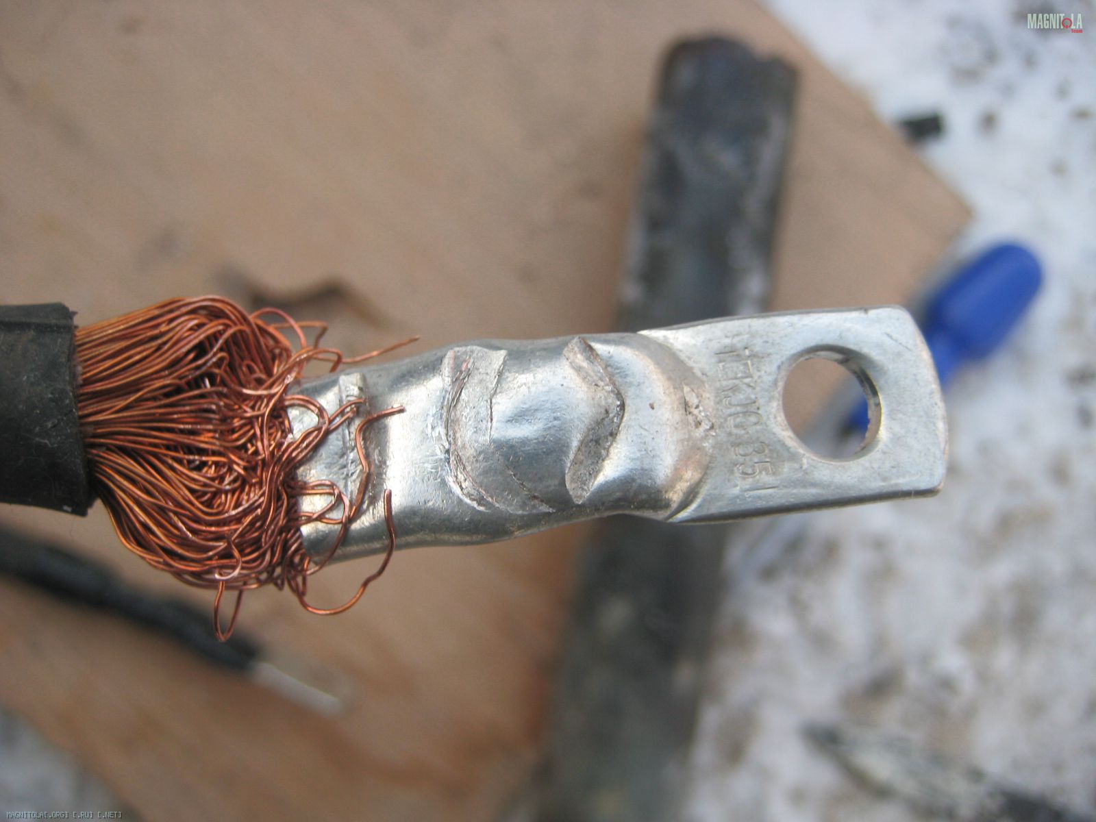 на - с кузова 2х35кг. ВСЕ в наконечниках. обжимал.. хм.. свечной ключ и железная труба... чем было бил кароч оч сильно..
