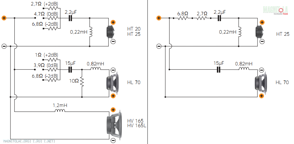 Кросс первого порядка без Цобеля по мидам, первого порядка по середине и второго порядка по верхам. Можете попробовать свой вариант, ибо авто это - не дома! Главное, обратите внимание на высоту КИЗ и ее комфортность восприятия... Я б вообще временно тумблер поставил для сравнения фазировкиж) ибо возможно что так сейчас понравилось- но это не значит, что это правильно и везде нравится будет.