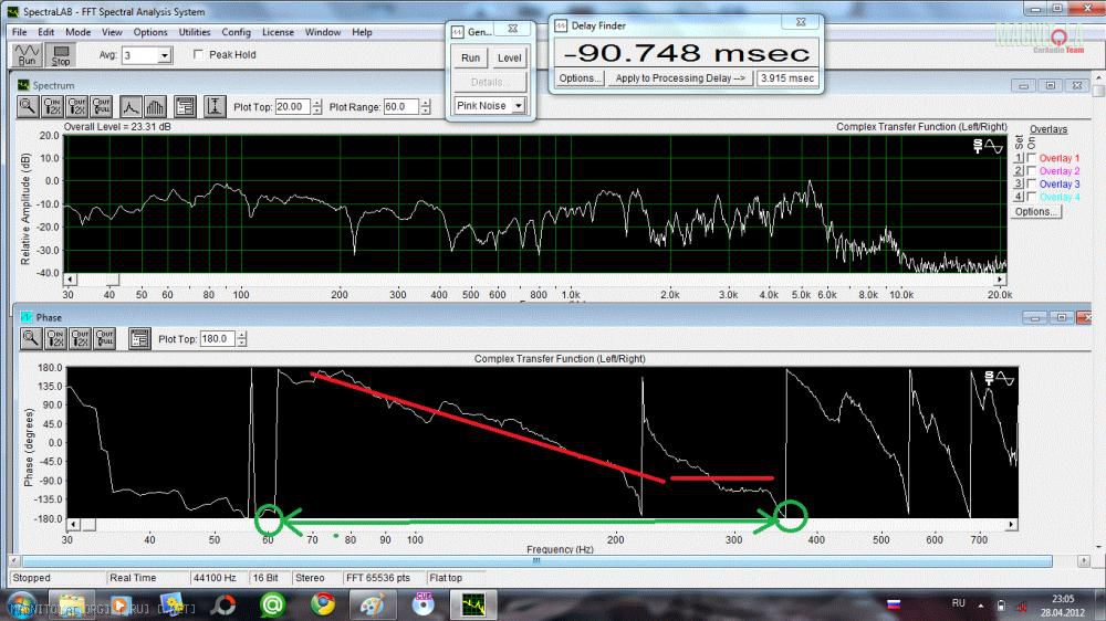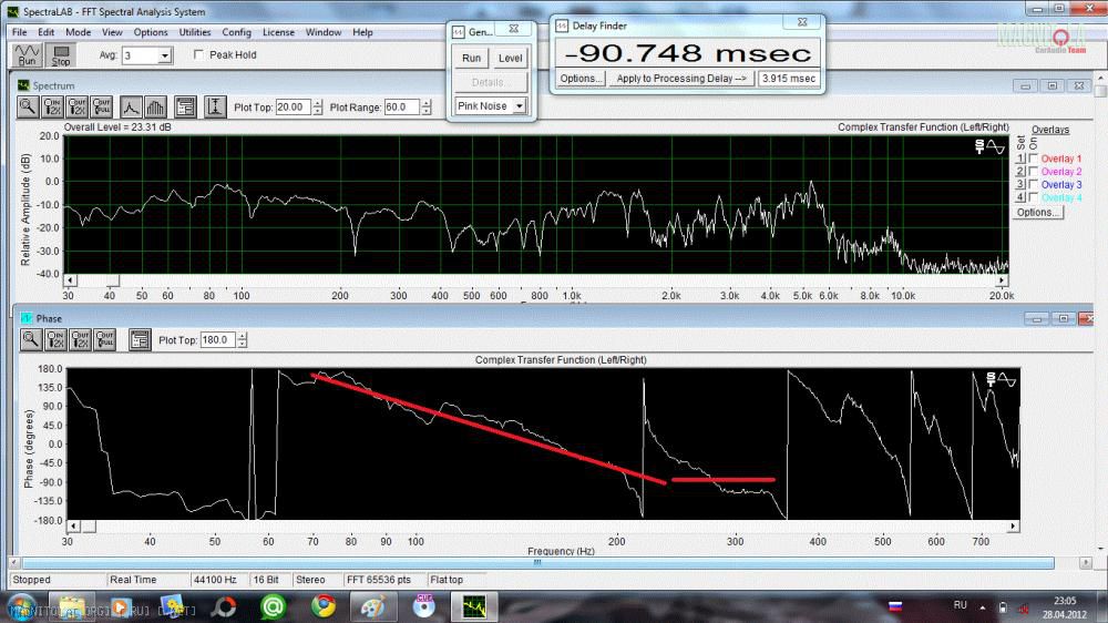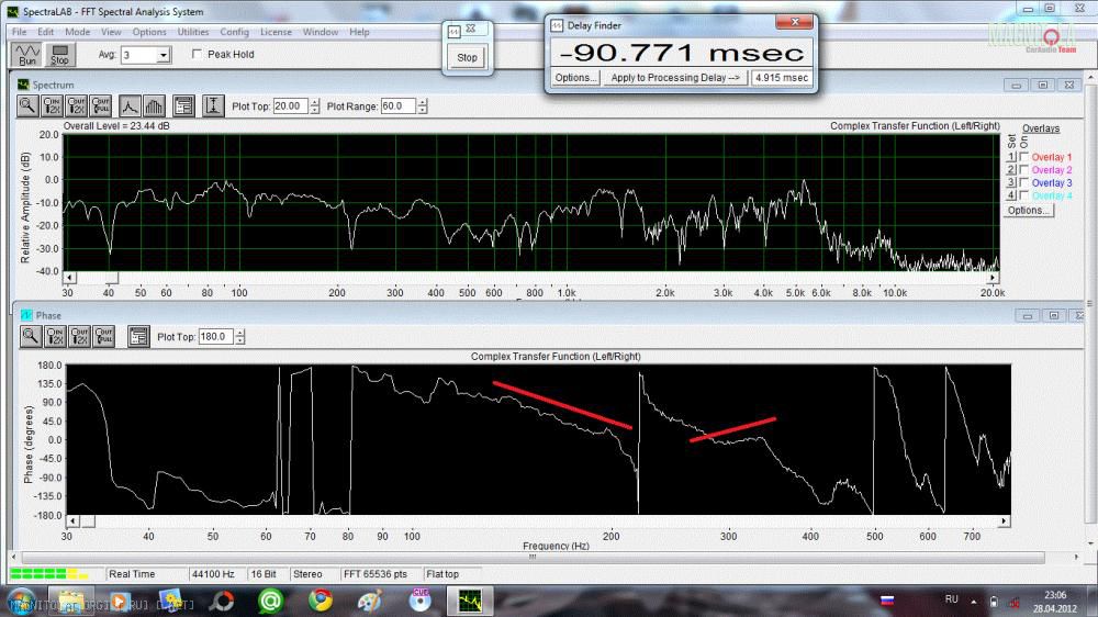 Ну и очередная попытка поиска базовой задержки в авто.Не стал сводить полностью решил только базу по правому миду. Итак судя по наскальному рисунку от ДядьВовы Вложение 219216 сделал такие выводы и провел измерения. Случай намер1(иду до истины грубыми шагами пожтому фоток для наглядности мало, а вреале подставных чисел было дофига.Отобрал просто самые яркие.Вложение 219220Здесь я так понимаю фаза ползет вверх губо от 250гц.
