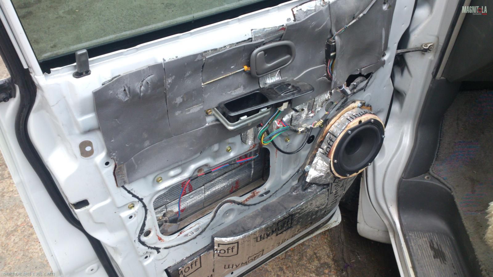 Кстати, Дэн, а у тебя штатных динамиков в дверях никаких случайно не осталось? В задних дверях что творится? Они проклеены? Штытные дины оттудава вытасчены, али не?