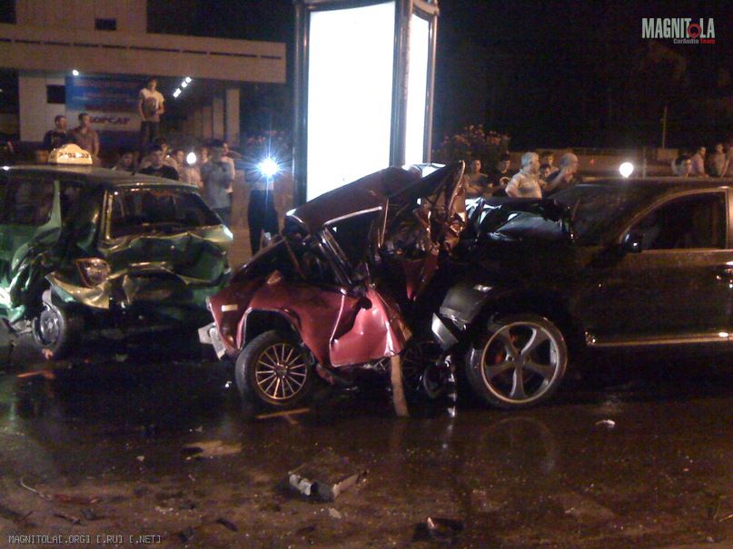 Сегодня, 10 июня, на улице Большой Садовой произошла крупная авария. Как рассказывают очевидцы, около двух часов ночи на пересечении с проспектом Чехова водитель на «Порше-Кайене» ударил «Дэу», затем поехал на высокой скорости в сторону Театральной площади, но на Кировском врезался в «шестерку» вишневого цвета, которую в буквальном смысле протащил. Затем «жигули» врезалась в три стоявшие такси.