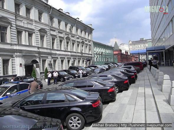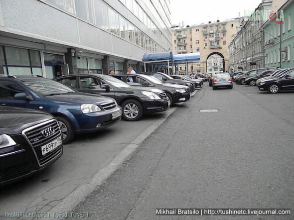 На задворках Государственной Думы есть Георгиевский переулок. Там находится такой же вход в Думу, как и со стороны Охотного ряда. Просто так вы туда не заедете. Переулок перегорожен шлагбаумом, где дежурят сотрудники ФСО. И там же депутаты просто плюют на закон о парковке, который сами же и приняли. Машины, якобы «слуг народа» припаркованы на тротуарах по обе стороны переулка, так что пройти можно только по проезжей части. Если взять примерное количество нарушающих даже в 50 машин в день, то бюджет теряет 150.000 рублей ежедневно. Фотографии сделаны 12 июля 2012 года, примерно в 14.00. http://nnm.ru/blogs/NoNaMe-Y/deputat...mo-vozle-dumy/