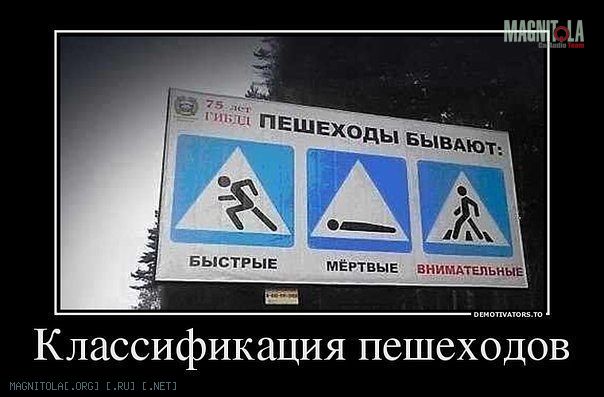 Что ыб не было случаев, когда пешеход - внезапность для водителя. Так же ответственность ( а вот тут интим , как и в статистике по дтп .Чаще слышим, что пьяный за рулем - причина всех бед, но статистика говорит, что большинство дтп и смертей - из-за чиновников, то есть состояния дорог ) должностных лиц за не оборудованные переходы, отсутствие ограждений, ветки, зелень, реклама и пр., загораживающие обзор.