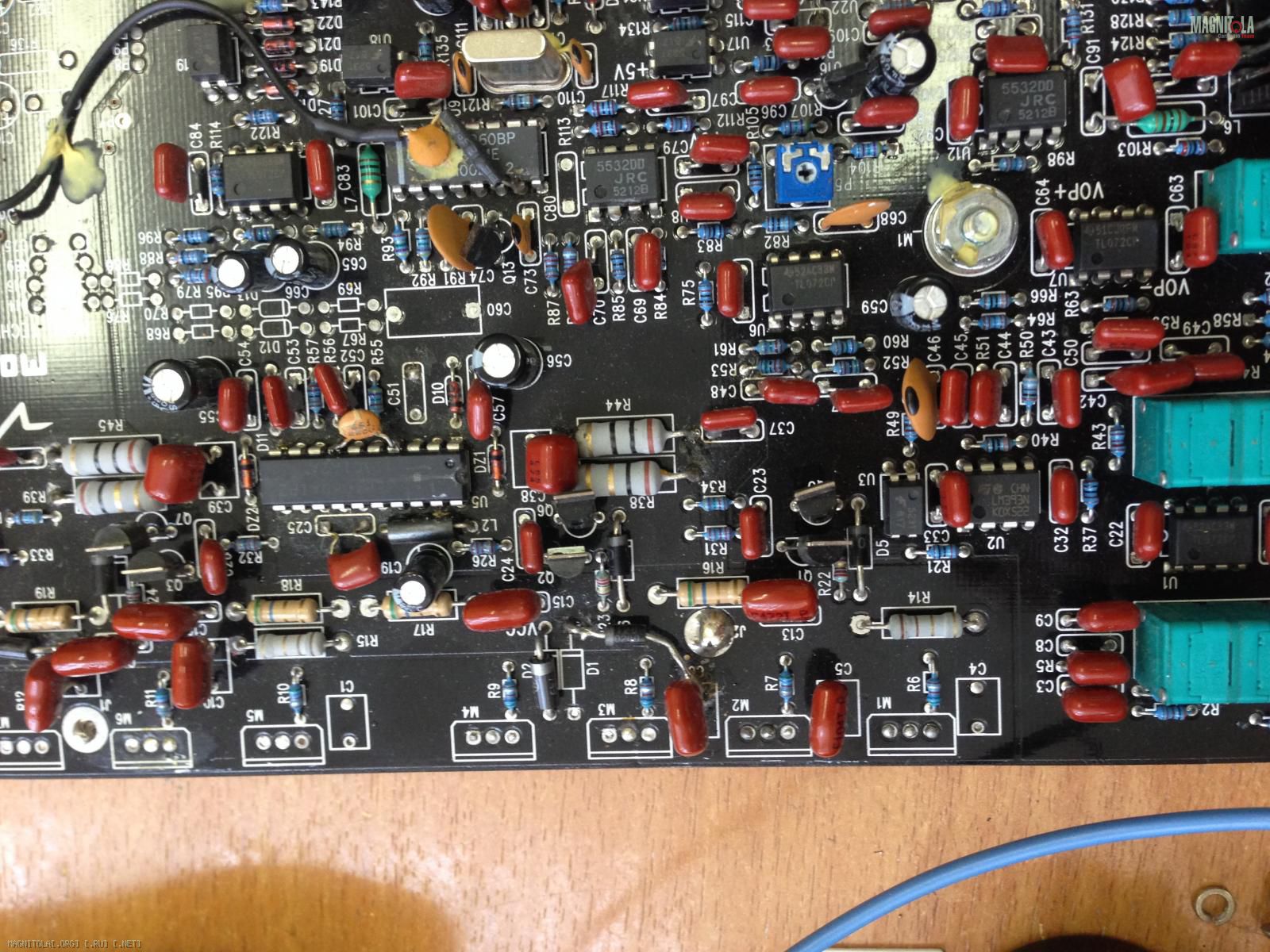 (в последних версиях этого усилителя стали закрашивать некоторые smd элементы и немного поменяли компоновку деталей на плате,ничего существенного.Номиналы подходят).
