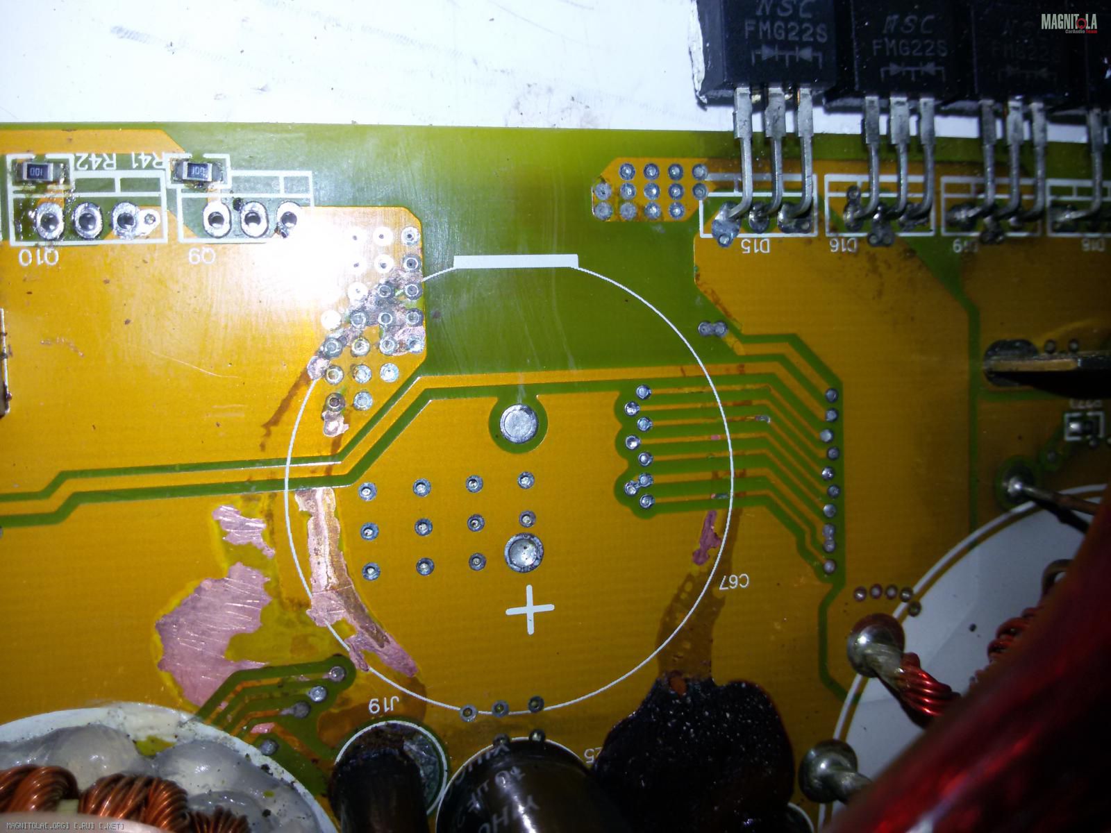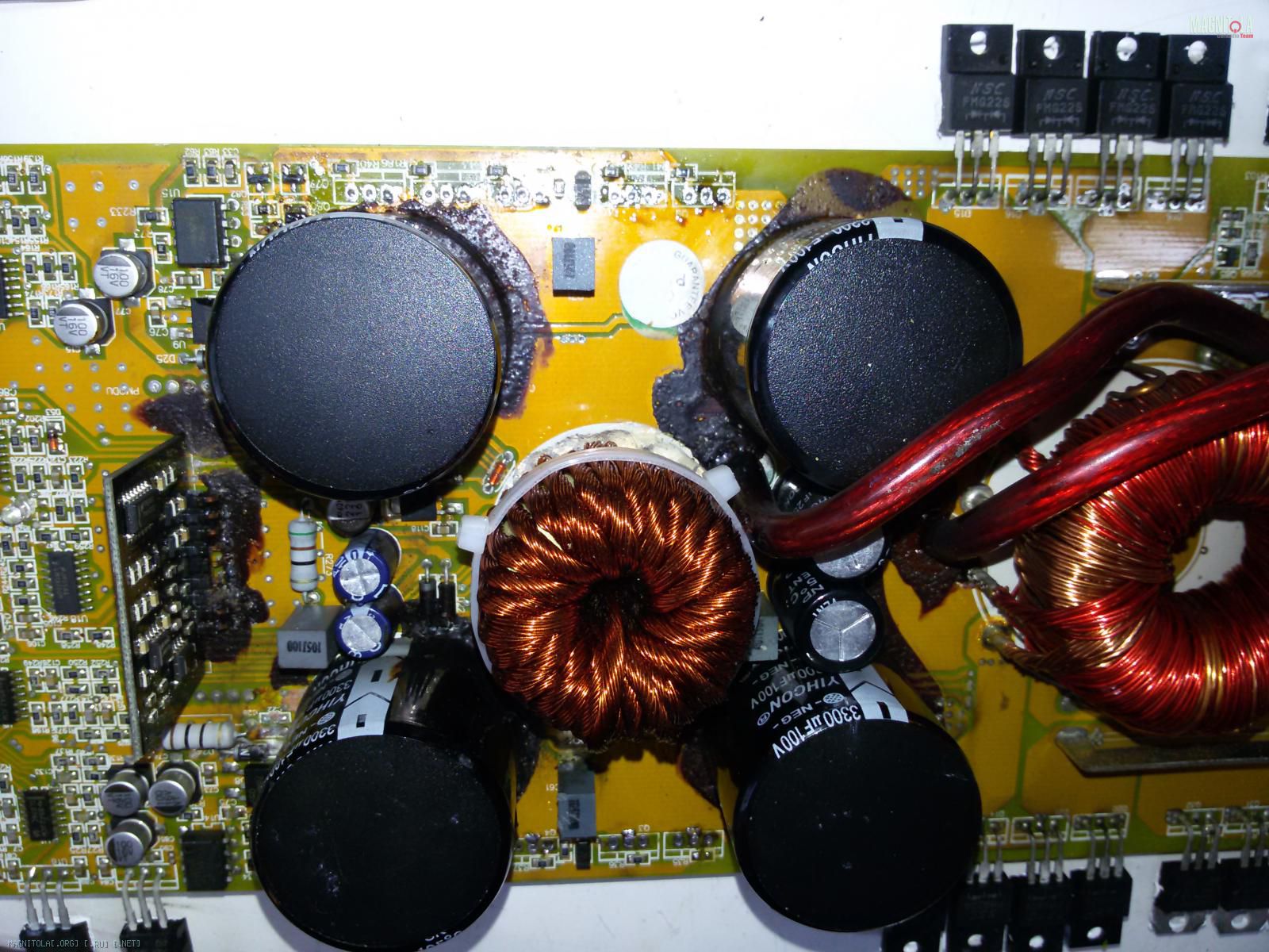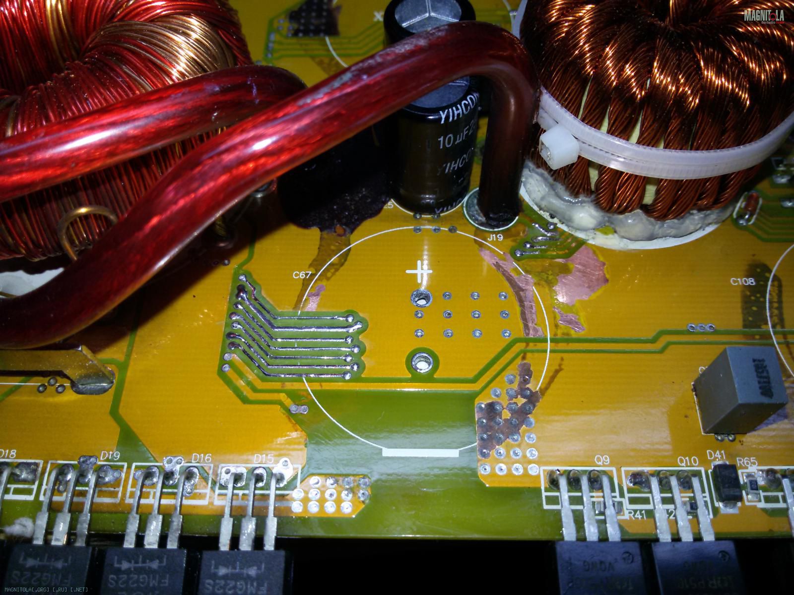 Kicx 1.900 Был перемотан дроссель, заменены выходные транзисторы на irfb31n20. Пришлось чистить плату от коррозии и восстанавливать дорожки. Коррозия была именно в тех местах где находился заводской герметик, некоторые дорожки пропали полностью. После восстановления плата была покрыта специальным лаком. Также на платке модулятора видно как отвалился один из пинов. Может кому будет полезная информация, потому как я сам этого не видел, обнаружил чисто случайно в одном месте, после чего решил снять весь герметик.