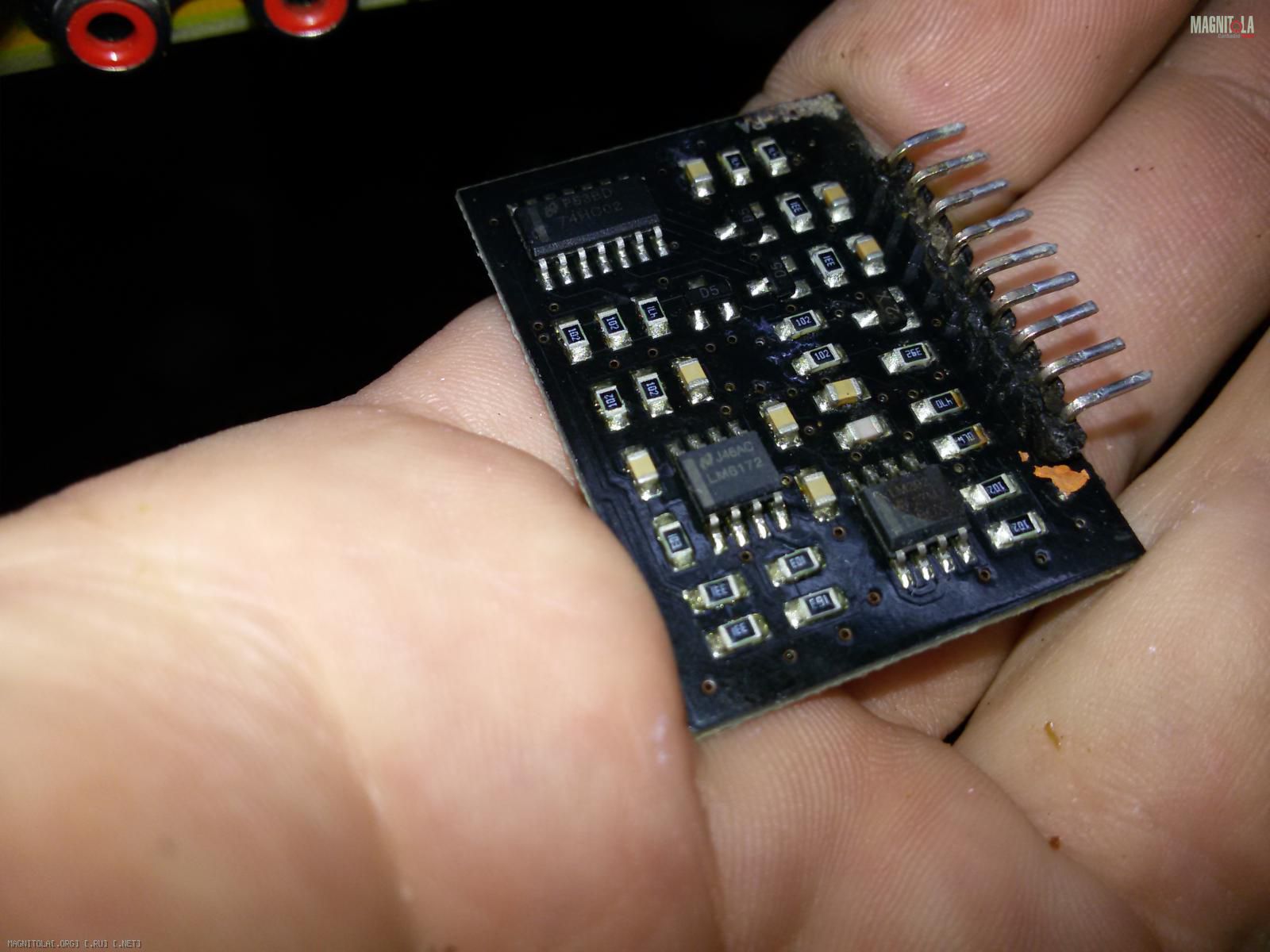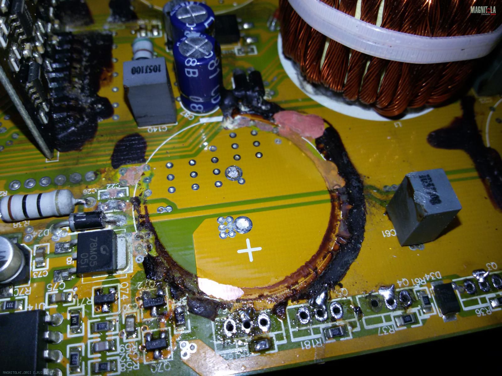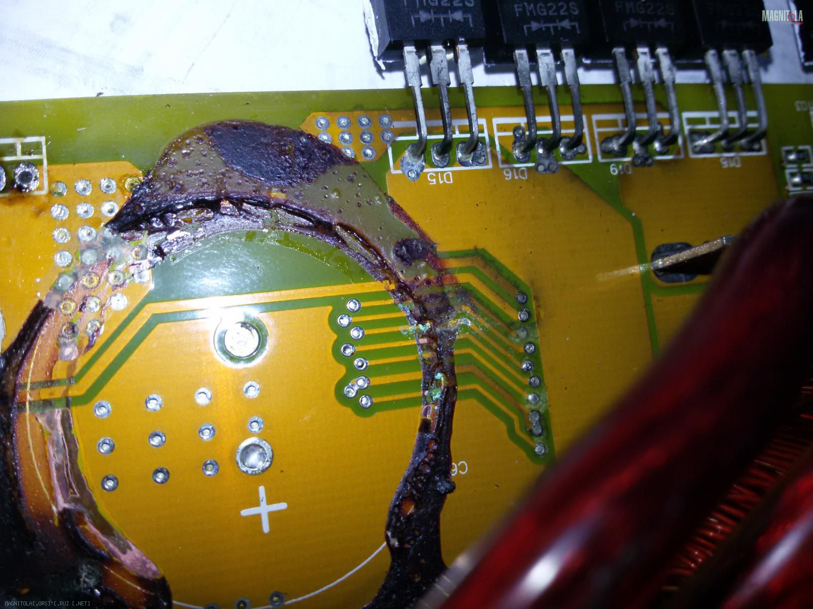 Kicx 1.900 Был перемотан дроссель, заменены выходные транзисторы на irfb31n20. Пришлось чистить плату от коррозии и восстанавливать дорожки. Коррозия была именно в тех местах где находился заводской герметик, некоторые дорожки пропали полностью. После восстановления плата была покрыта специальным лаком. Также на платке модулятора видно как отвалился один из пинов. Может кому будет полезная информация, потому как я сам этого не видел, обнаружил чисто случайно в одном месте, после чего решил снять весь герметик.