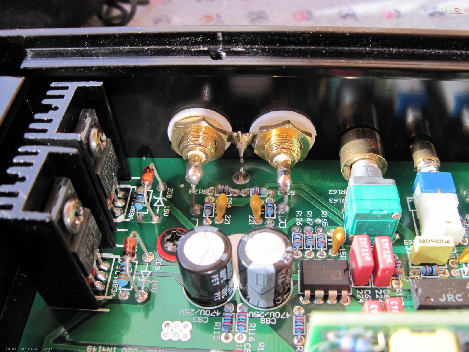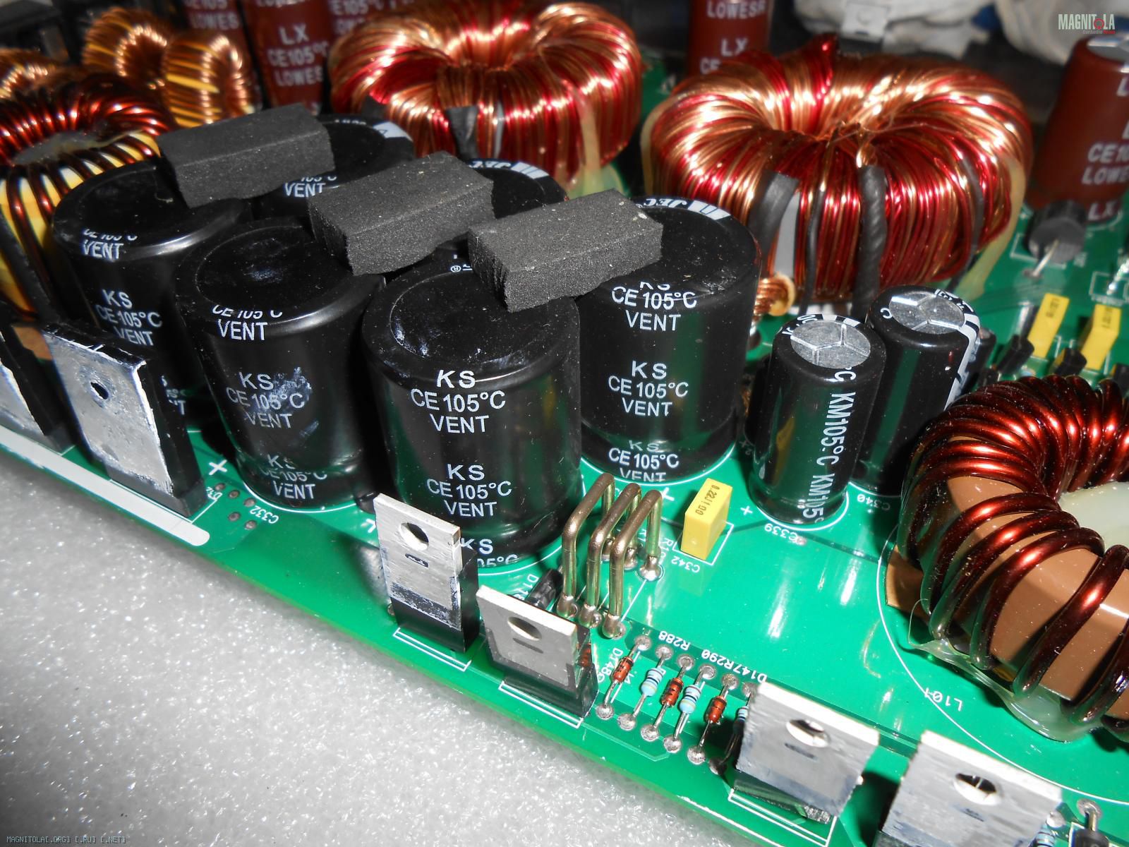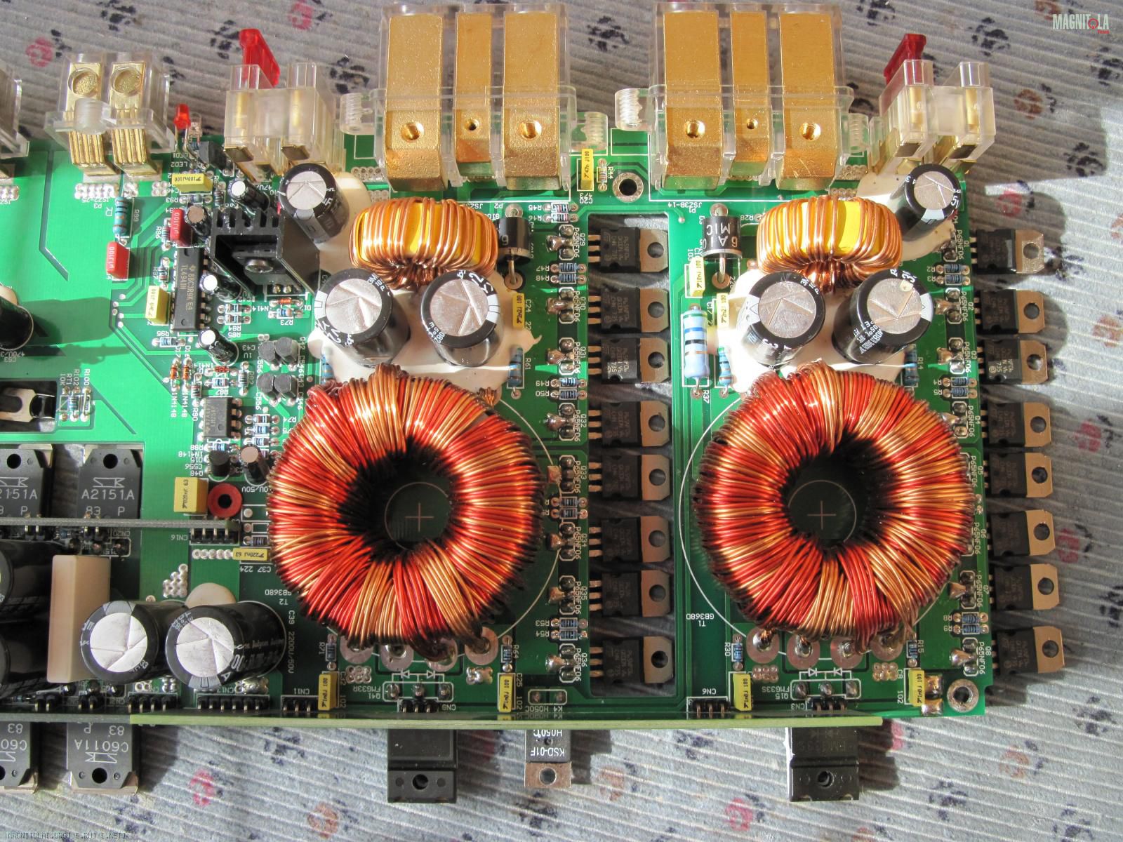 всё не чо, хреновая пайка,на нагрузку реагирует ровно(плечи не косят)достаточно просто установить ток покоя,но перед установкой необходимо подождать чють дольше, на всех каналах ДК и УН комплектация одна а напруга +-34 саб,обычные-+26 поэтому дольше выходят если вообще выходят в режим, можно посчитать но это совсем другая история.выхлоп KTD998,KTB778 саб TIP35C/36C.