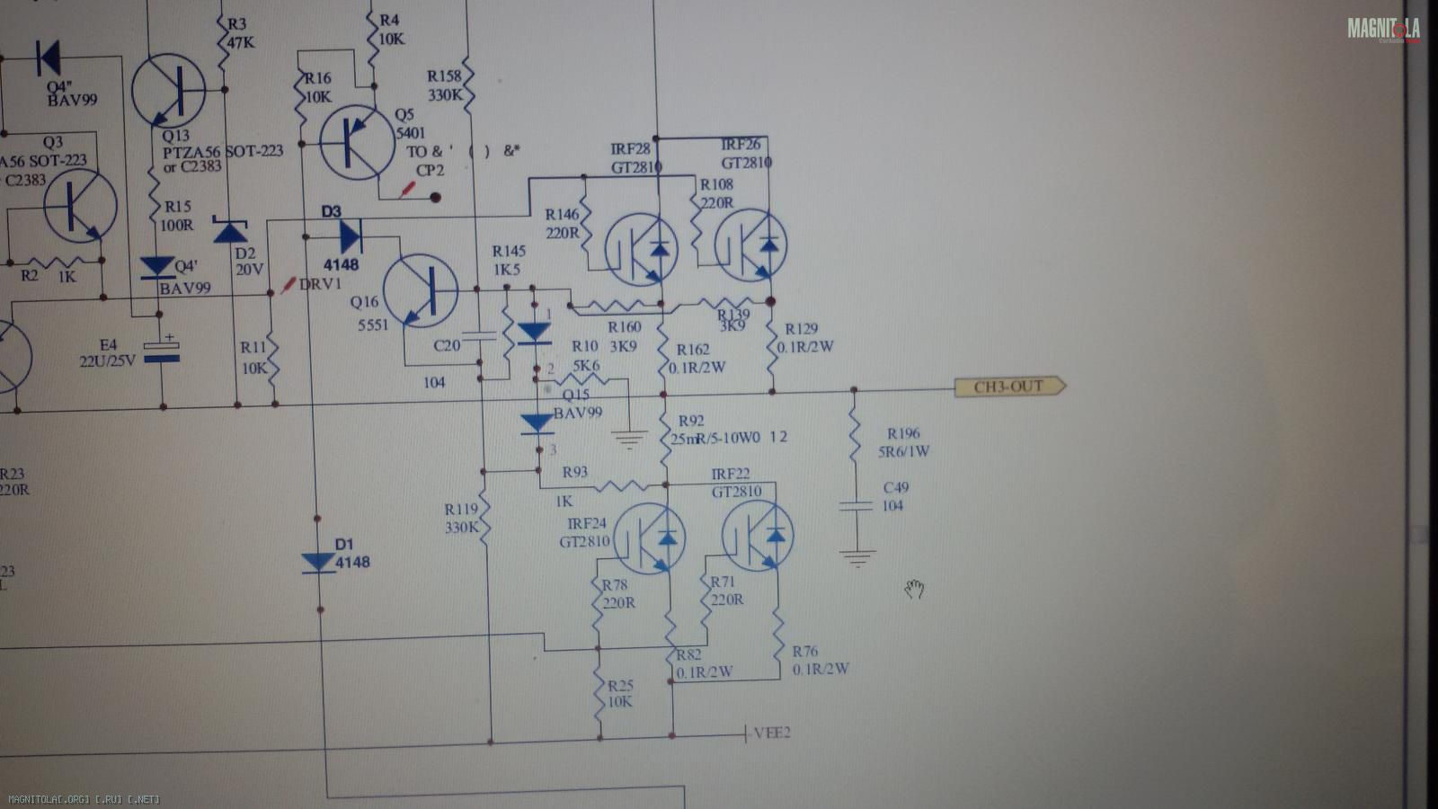 Сегодня пришел в ремонт гарантийный Focal FPS4160. оказалось, не до упора был вставлен коннектор с кроссовера в материнку. Вылечилось за несколько минут. Однако этот экземпляр показал, что он уже как бы из обновленной серии. В прототипе стояли IGBT транзисторы с маркировкой MSGT2810, причем сами транзисторы существуют, а информация о них нет. В те времена я менял их китайскими клонами Тошибы 2SK1529 (увы, купил на Ebay подделки, но рабочие), теперь они и сами решили не заморачиваться с закупкой этого транза и просто заменили его мощным полевиком IRFP150N. Вот и думайте, будет ли здесь звук на 400 Евро???