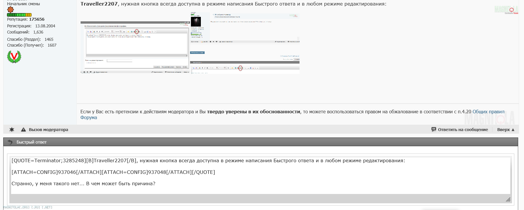 Traveller2207, нужная кнопка всегда доступна в режиме написания Быстрого ответа и в любом режиме редактирования: