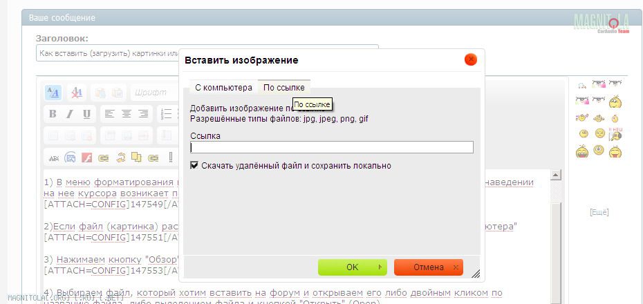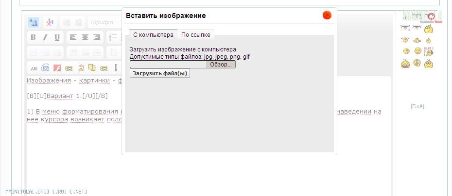 2)Если файл (картинка) расположен на Вашем компьютере, то выбираете вкладку "С компьютера"