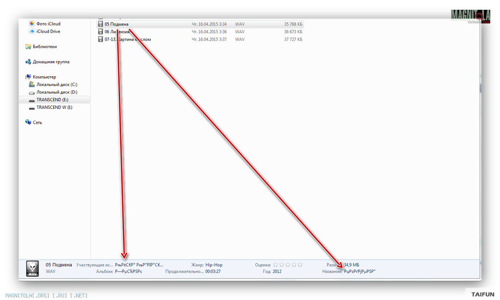 там на фотографии у меня только один альбом теперь кракозябрит, а было два - один WAV и один mp3. C mp3 ситуацию я уже исправил, а с WAV ещё не закончил эксперимент. :)