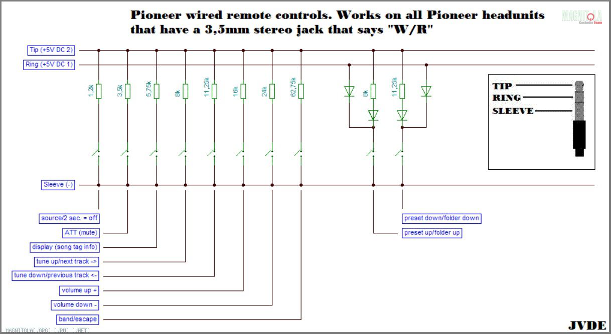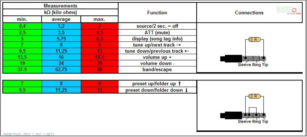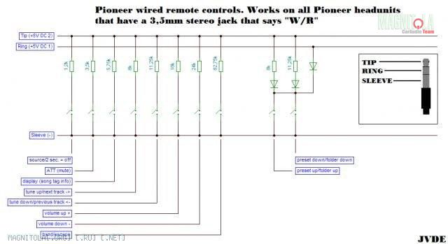 не могу чето я подобрать сопротивления для кнопок на руле. Подстроечником перепробовал уже все номиналы. от 10 ом до 500 кОм. Попал только на перемотку папок вперед назад, и не более того. Отсальные команды не воспринимаются... Голова Pioneer AVH-P3100 DVD