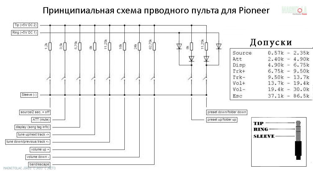Кроме того, хочу заметить, что у меня на двух магнитолах (mvh-x580bt и deh-4300ub) folder down соответствует сопротивление 5-6ком, а не 11, как на приведенных здесь и везде схемах. Может кому то это поможет, сам долго искал косяк.