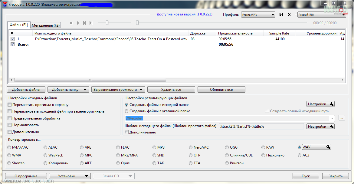 сделайте тоже самое, только на вкладке аудио, а не общее[/QUOTE]