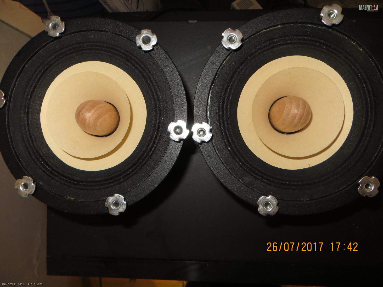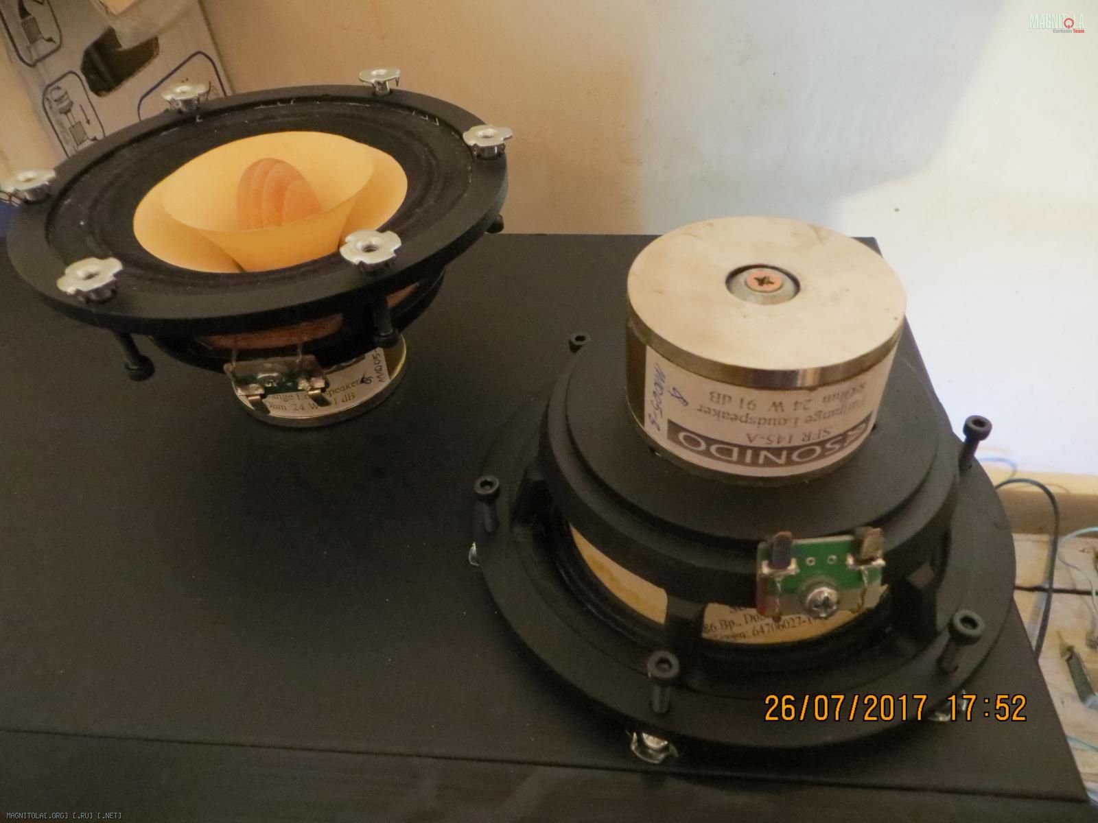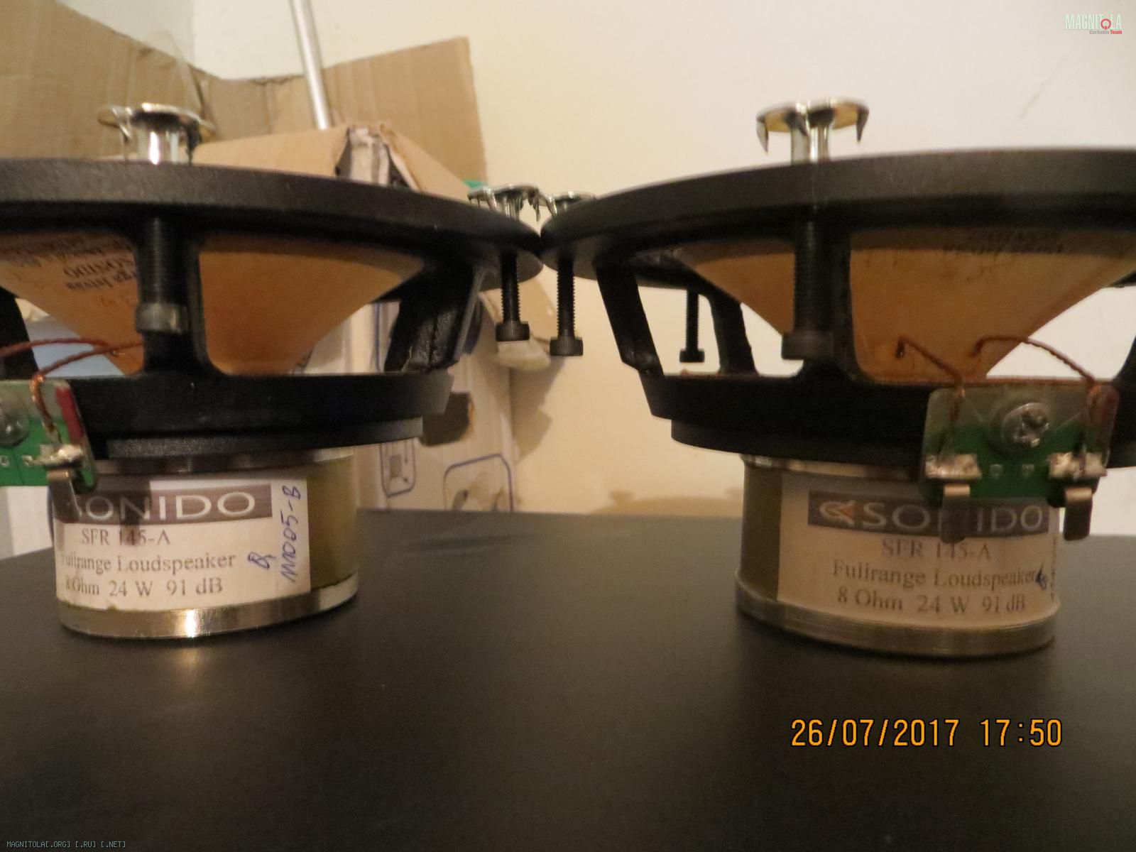 есть пополнение и в компонентах... готовы мои хендмейд миды... сч утверждены давно SONIDO SFR-145A на текстильном подвесе... так случилось, что в один динамик сонидо попал мусор в зазор и я их отправил на ремонт к тому самому другу - инженеру, который изготовил миды... вот он под конкретные сч и миды изваял... отслушивал он эту связку месяца три, меняя подвесы и ЦШ мидов...