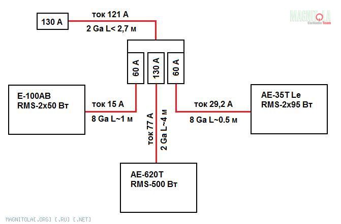 Смущает одно "но" - сечение кабеля от АКБ до распределителя (под сиденье) (2 ga) и номинал предохранителя (130А), будут равняться сечению кабеля и номиналу преда от распределителя до сабового уся (в багажник)?