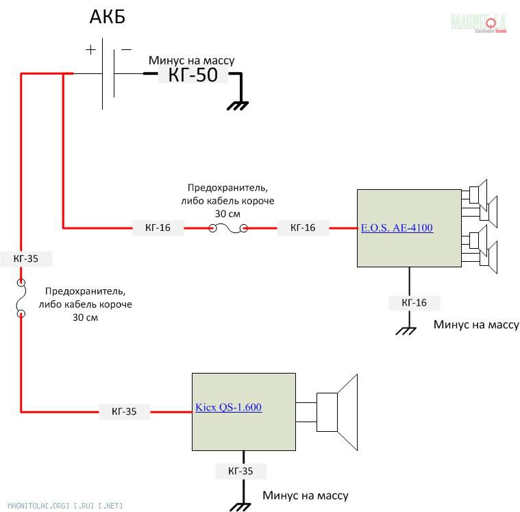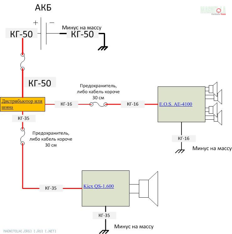 sunwider спасибо большое за разъеснение,значит на 4х канальном 2 по 40 и на моноблоке один на 150 , то есть 230 ,а кг25 250 , то есть можно и предохранитель тоже на 250 , а можно для четырех канального кг 16 отдельно минус из под сидушки , а на моноблок кг25 и тоже минус с кузова??? а то как бы денег много выходит,просто как я думаю чем меньше провод резать на дистрибьюторы чем меньше потери, а обязательно ли ставить предохранитель на силу?