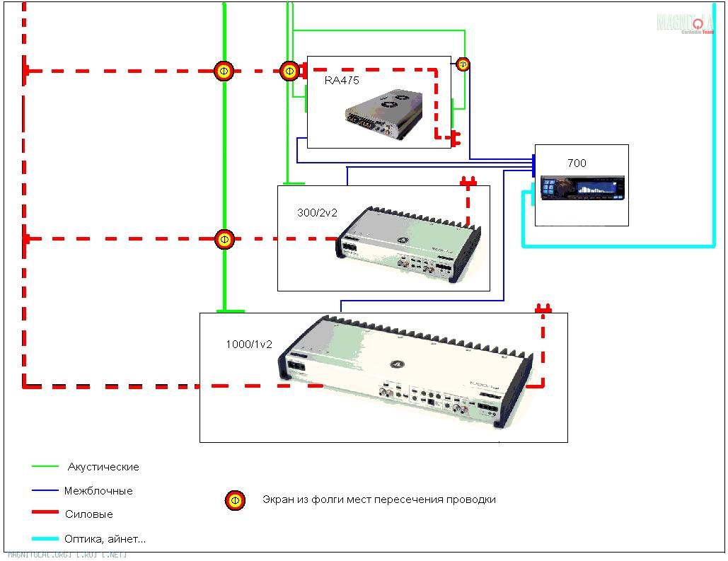 пару лет назад где-то "хапнул"очень внушающую доверие статью про наводки и экраны,не помню где,но распечатал себе,если найду,отсканю и выложу.вобщем,после прочтения оной,питающий кабель потащил в металлопластиковой трубе+ещё защита от мех.повреждений (была мысль в использовать металлорукав,но чёт передумал),"арматура"у неё алюминиевая(AL не рекомендовали для экрана,но почему не объяснили,да и однозначно лучше чем ничего) и сечение неплохое,подпаял её к массе.опять-же землить все экраны рекомендовали в одно место и только с одного конца,дабы избежать "контура".фольгу тоже использовать не рекомендовали.системка у меня корявый бюджет,а-ля колхоз тюнинг,по мере возможности заменяю компоненты на более... руководствуясь горьким опытом стараюсь всё делать "на вырост",поэтому заэкранировал всё что можно и не можно.