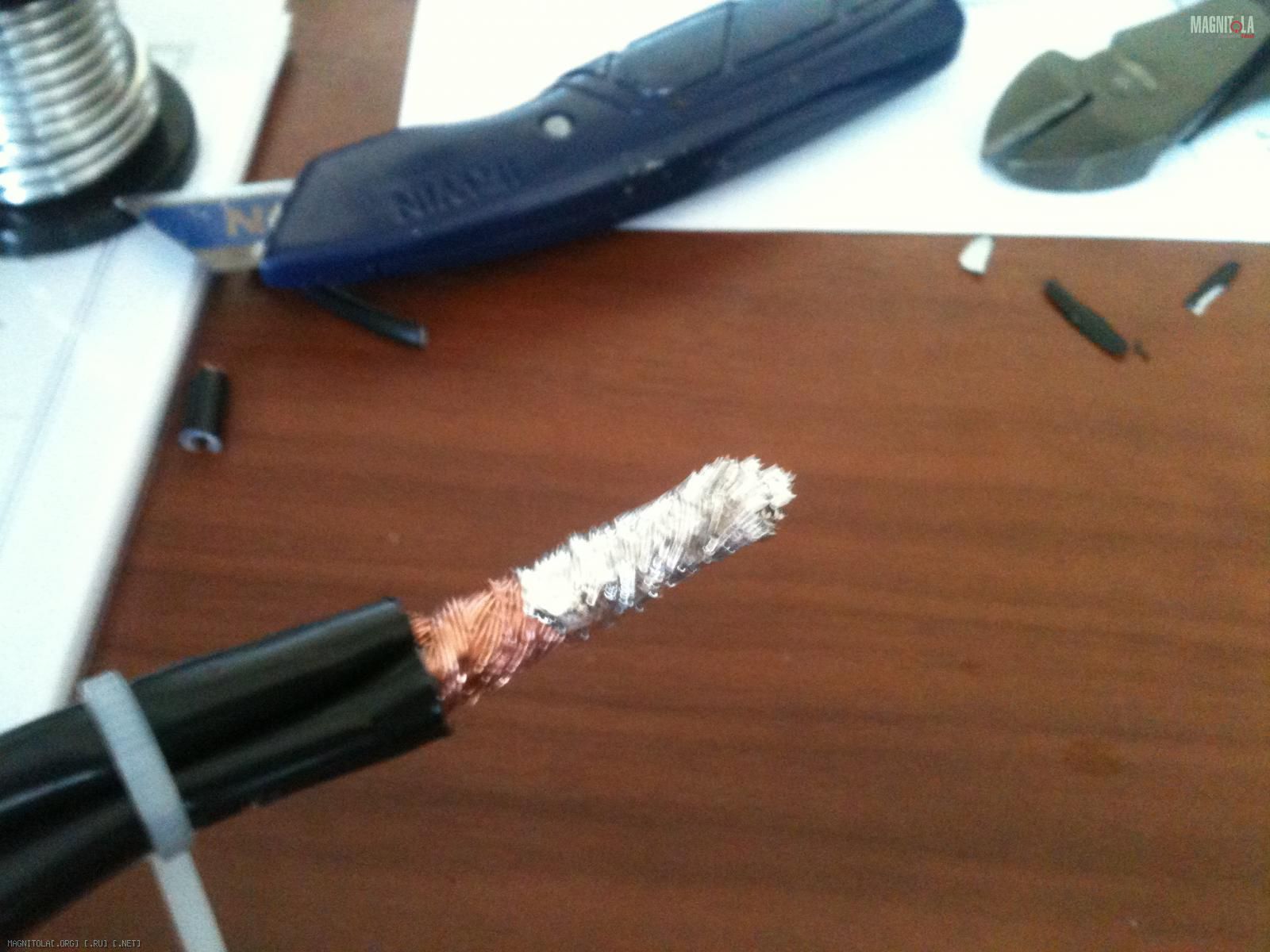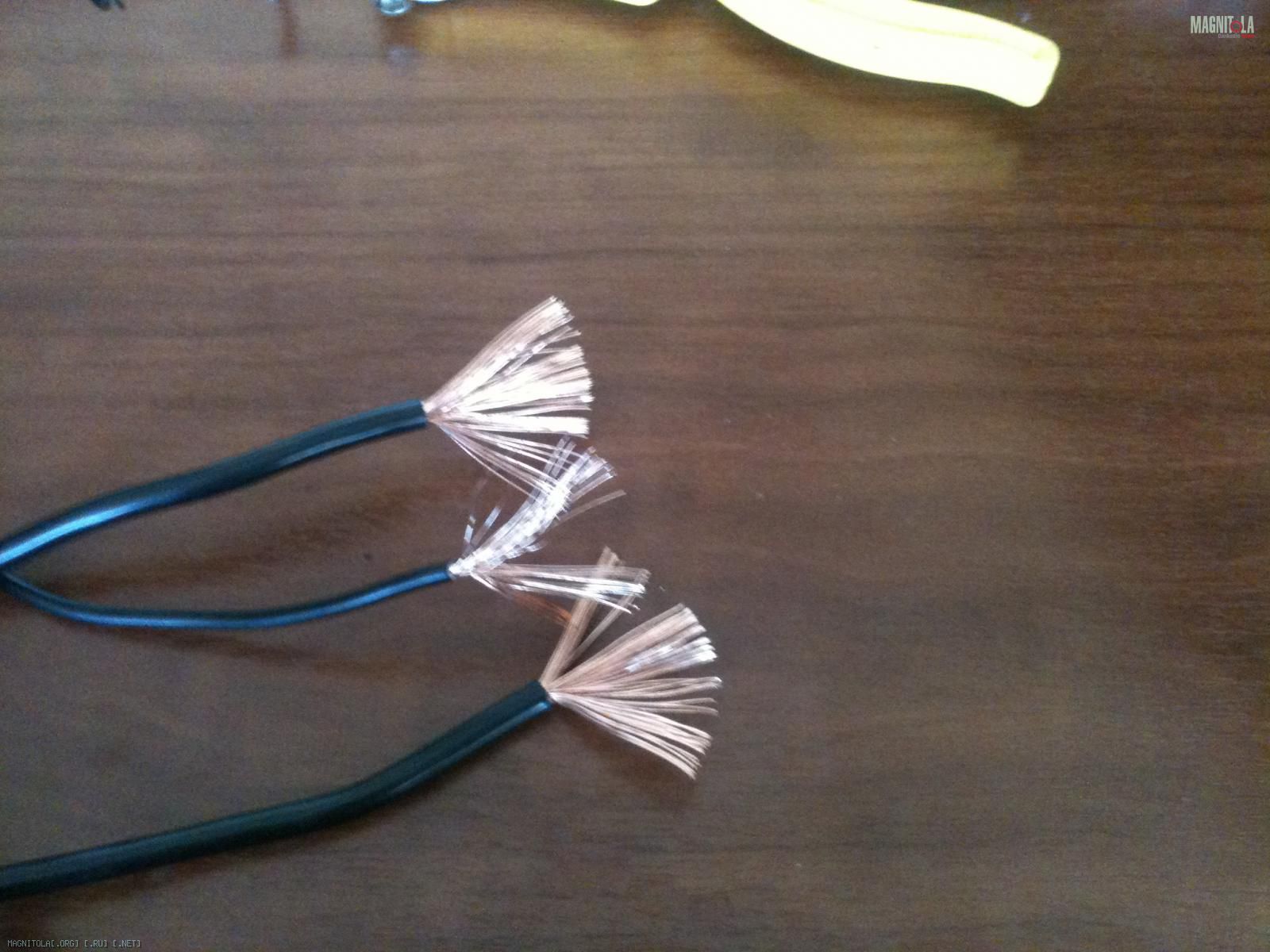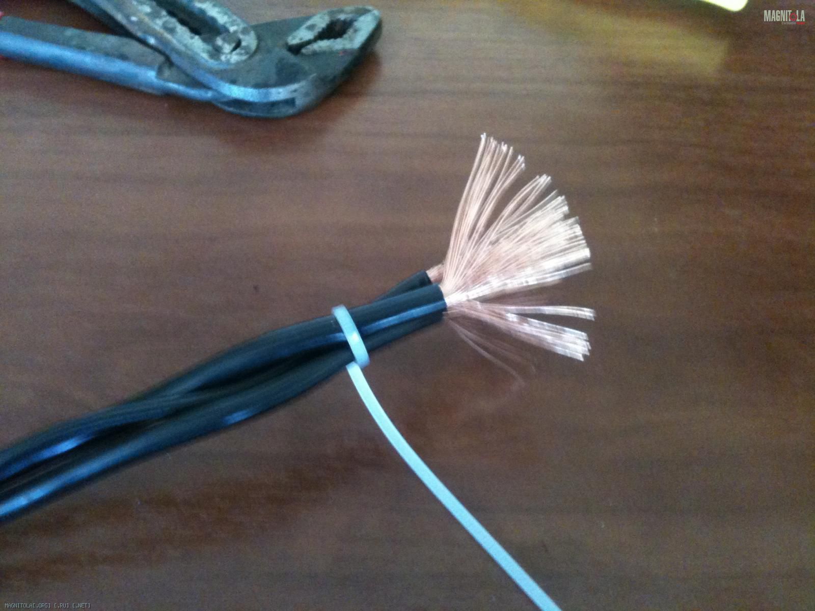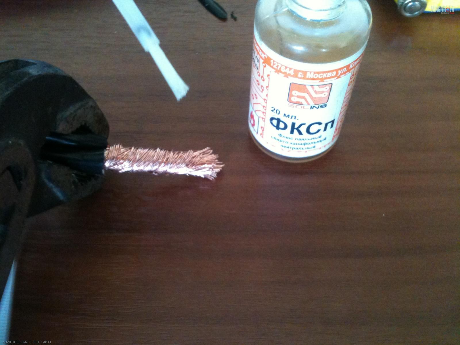 Радостная для меня новость: мы с Артлайном проявили добрую волю, отказались от ненужных амбиций и помирились! По теме: правильно оформленный силовой кабель, в моём понимании должен выглядеть так: Вложение 398632Вложение 398634Вложение 398636Вложение 398638Вложение 398640Вложение 398642Вложение 398644Вложение 398650Вложение 398646Вложение 398648 1. Закрепляем в струбцине наконечник под опрессовку, направляем на него строительный фен, внутрь кладём проволочки из припоя. 2, 3. Пока разогревается разделываем концы кабелей, скручиваем вместе. 4. Капаем нейтральный флюс. 5. Обмакиваем в импровизированный тигель. 6. Часть конца в "тигель" не влезла, её опаиваем используя тот же фен. Он, кстати, ещё и сдувает лишний припой. 7. Накладываем изоленту в два слоя (если кто не знает, это намотка на половину ширины ленты). 8. Одеваем змейку. 9. Будущий "минус". 10. Общий вид.