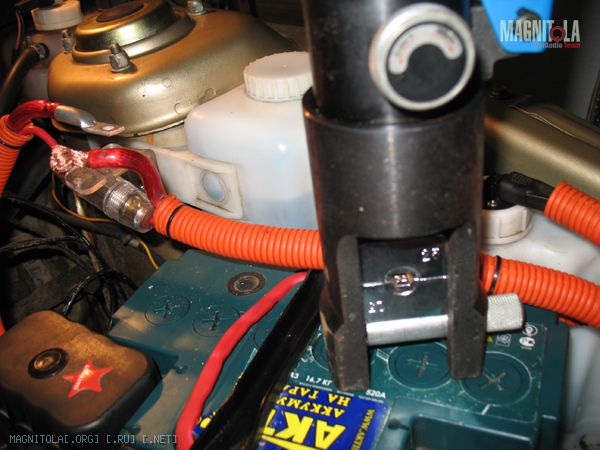 Процесс пошел. Закрываем плюсовую клемму кожухом (от губки для обуви:)):Вложение 6197