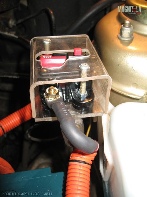 Lesnik, После колбы предохранителя ставишь реле с низкоточным управлением, кнопку в салон. Только фирменное - ценник будет... хм... аудиофильский.. :)