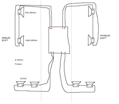 Так имею 8 динамиков , на 4 дверях и 4 на полке ,все сидит на заводских местах с обесшумкой,динамики заменил на вокал как и в стоке 13 см , все это запитал в обход штатн усилка через 4 канальный усь по совету хорошего спеца,система заиграла лучше чем было но я ожидал лучшего,гляньте на схему подключения, может можно подключить по другому что бы лучше заиграло?Вложение 1022892Вложение 1022894