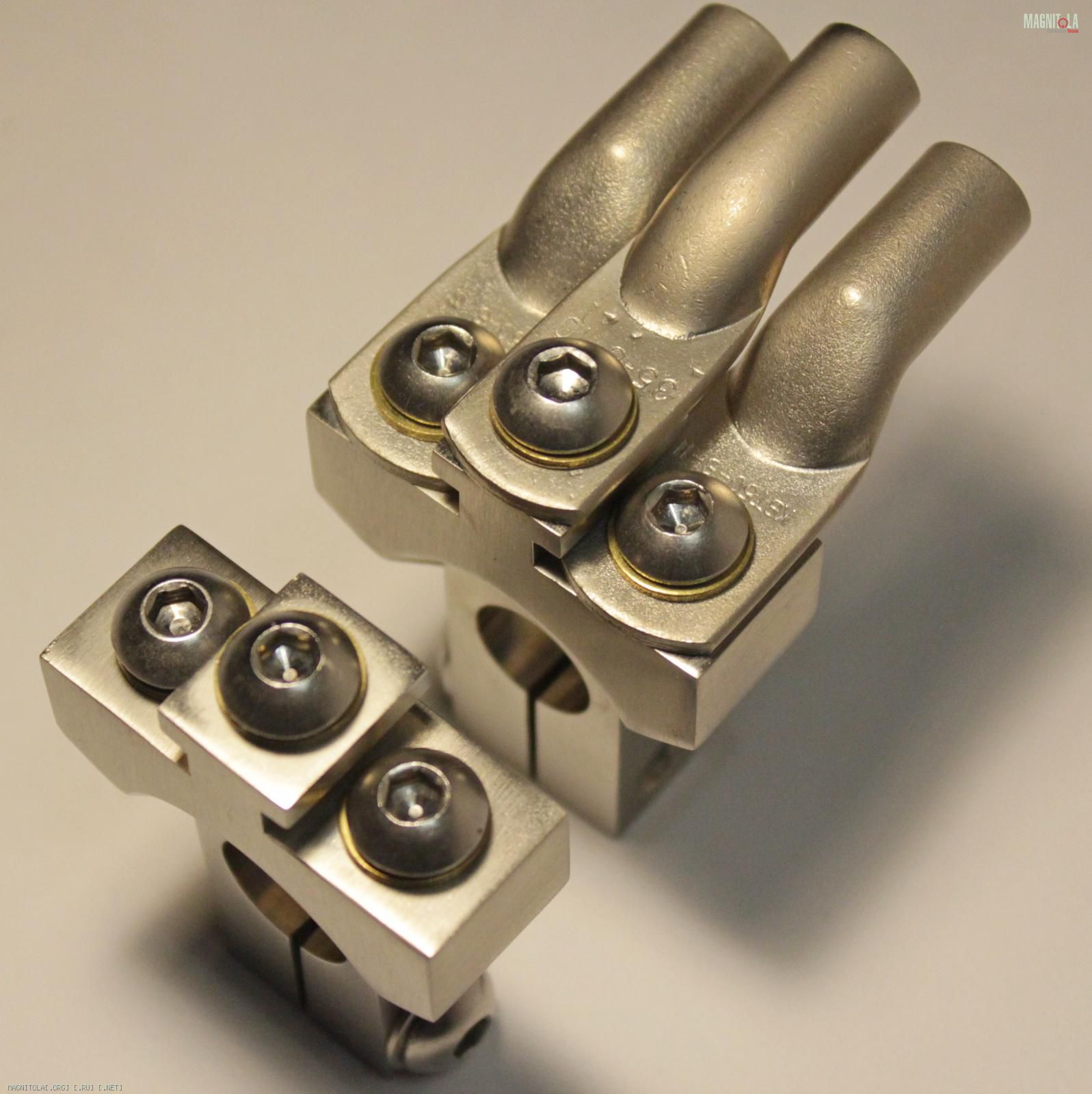 BuchJN, ну давай прикинем. каждая клемма по четвреть-кило, итого полкило. Это если бы делалась литьём. Но делается токарными и фрезерными операциями из болванки. Заготовка каждой пары клемм 2 кг. Итого только на материал клемм 4000 руб. Добавь цену работы токаря, фрезеровщика. Работа по шлифовке, гальваника. Только за клеммы без зажима выходит 5-6+.