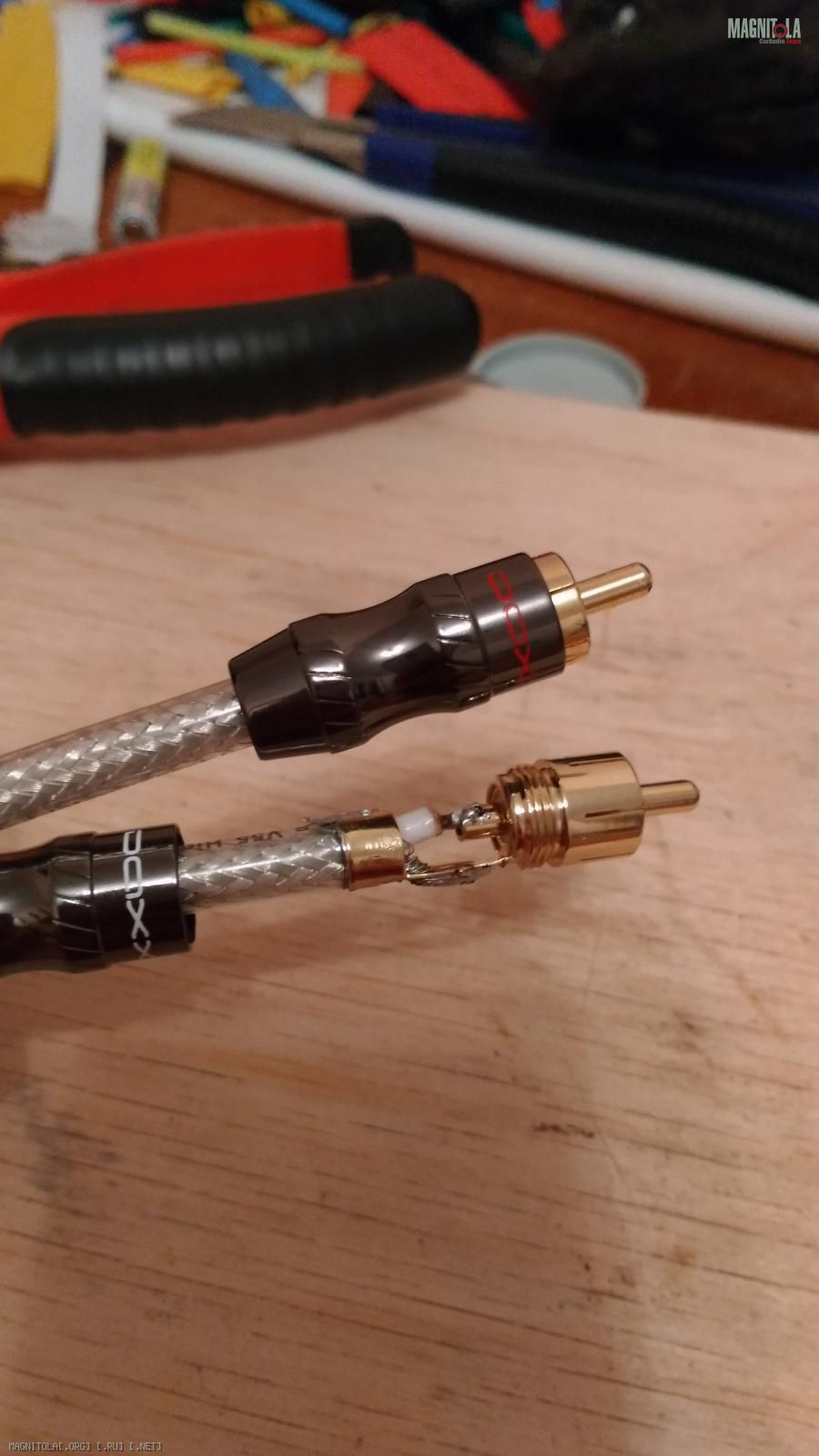 Не плохо сделанная работа..Я ещё место пайки лаком покрываю.Но берут смутные сомнения на счёт лужёного экрана..Очень он на звук влияет не в лучшую сторону.Много тут лишнего понаписали..От себя добавлю....Сигнальные жилы должны быть параллельны друг другу и на отдалении чтобы убрать зависимость..Но это пока вам рано но от покрытия на проводнике изменение в звуке слышно очень хорошо..Дальше в ваши дебаты не лезу..