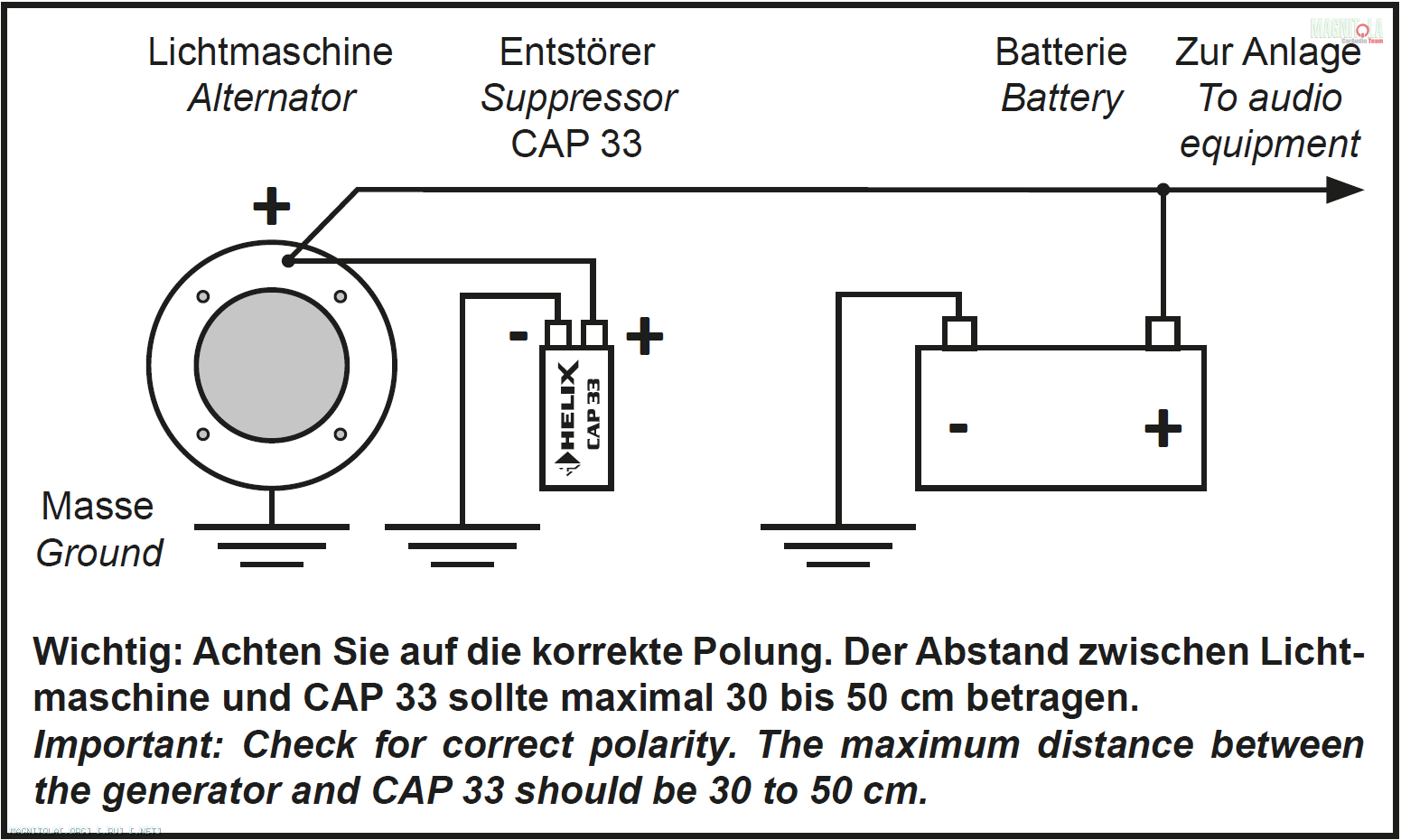 Друзья, вот именно так и устанавливается Helix CAP 33 и и аналогичные конденсаторы шумодавы.